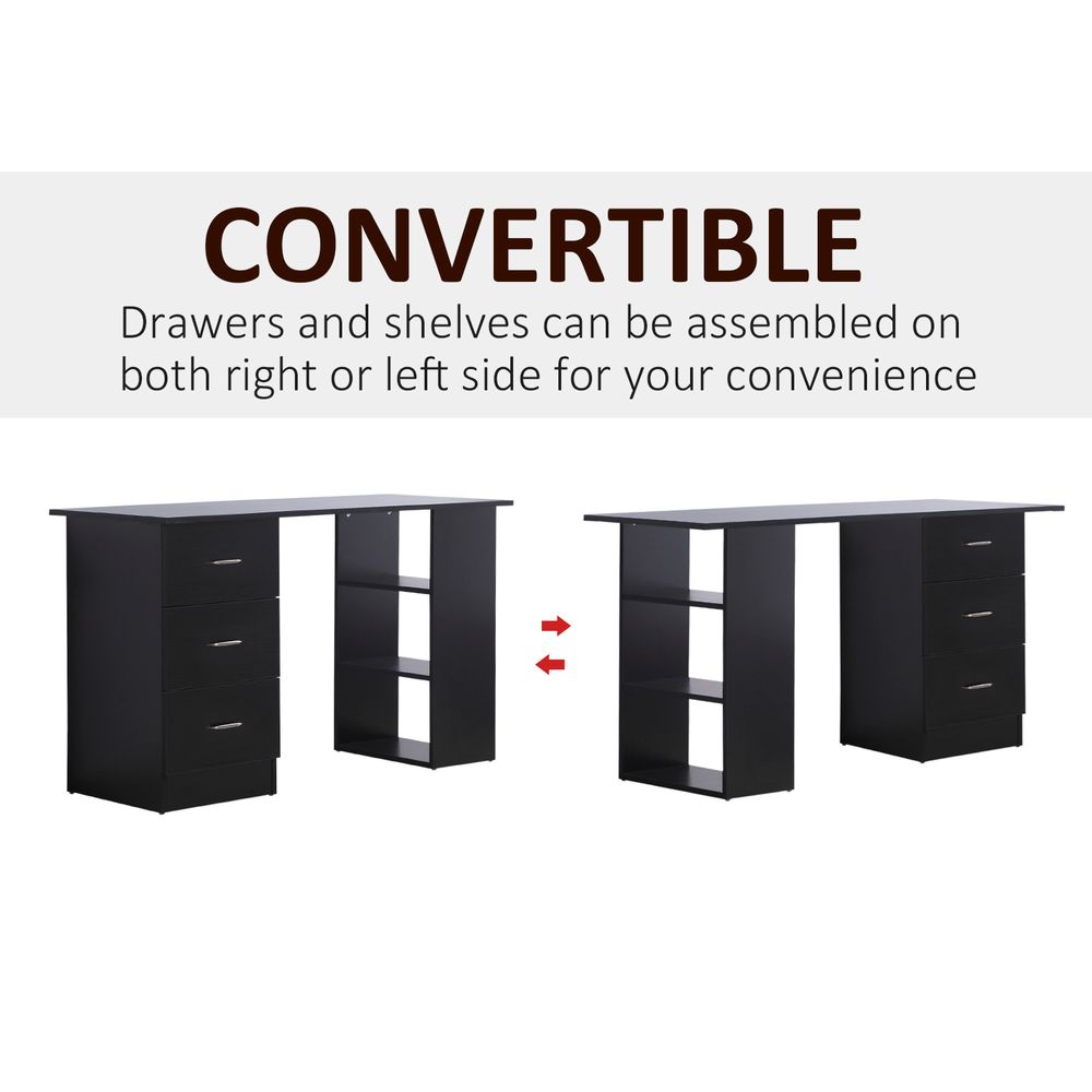 120cm Computer Desk PC Table Workstation w/ 3 Shelf & Drawers - Professional Quality Black Desk for Home or Office