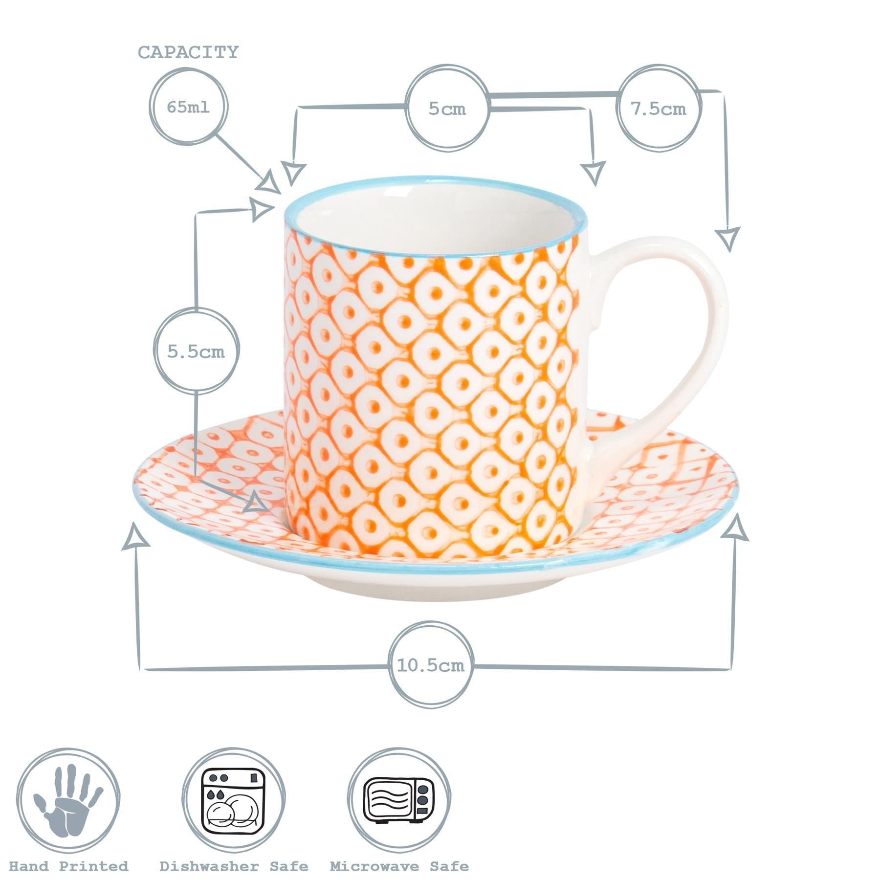 Each cup and saucer in this exquisite set is adorned with a hand-printed floral decoration, inspired by traditional Japanese print design. The delicate, organic motifs bring a serene balance of colour and texture, creating a statement piece for any kitchen or coffee nook. The artisanal touch ensures every piece is uniquely yours - a celebration of craftsmanship that adds a splash of Boho chic and effortless sophistication to your daily coffee ritual.