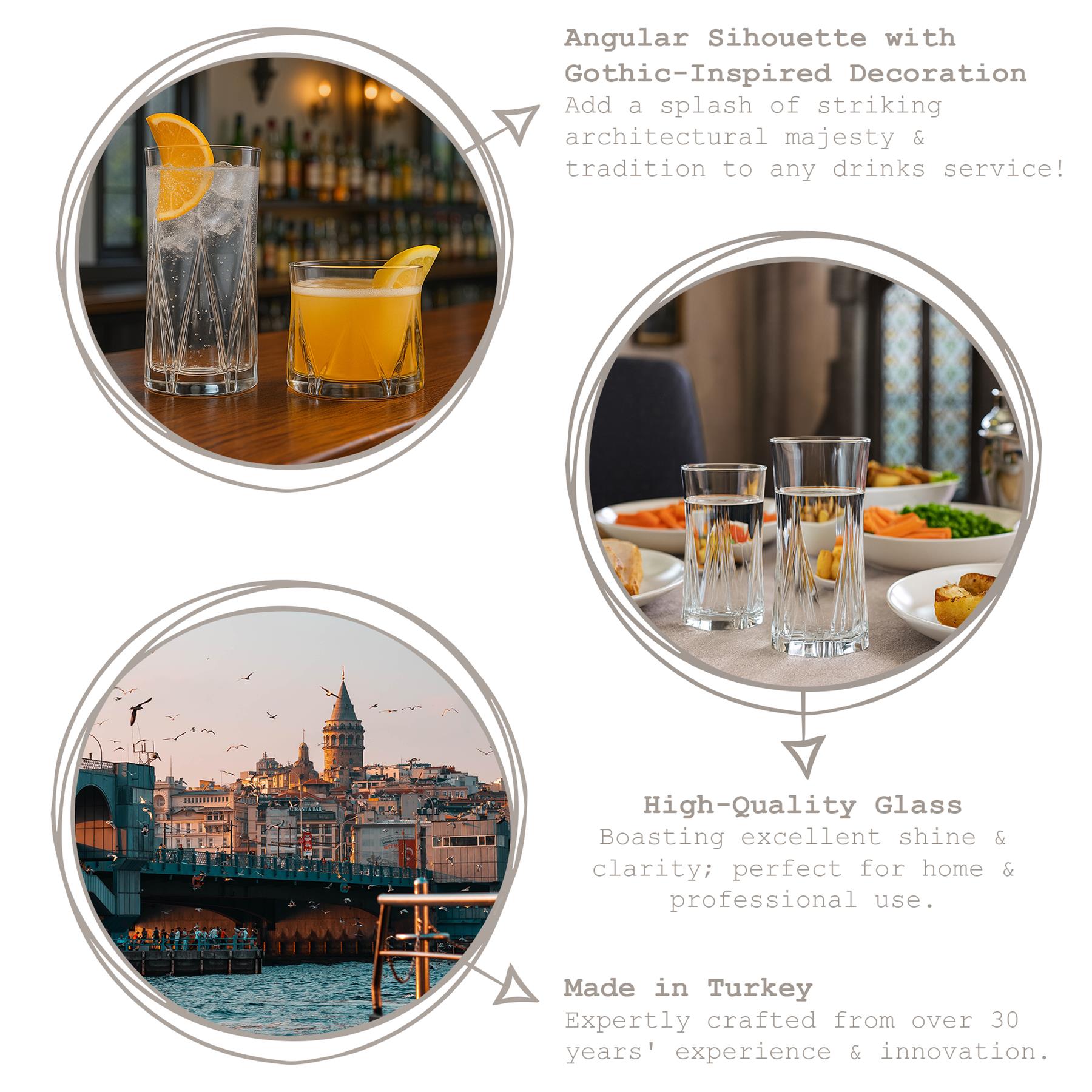 Proudly made in Turkey, each piece is the result of over 30 years of glassmaking expertise and innovation. This heritage of craftsmanship ensures not only beautiful aesthetics but also superior quality and attention to detail. Designed for cocktail lovers and style connoisseurs alike, the Zoey range embodies the perfect harmony of tradition and modern allure – a stunning addition to any contemporary glassware collection.