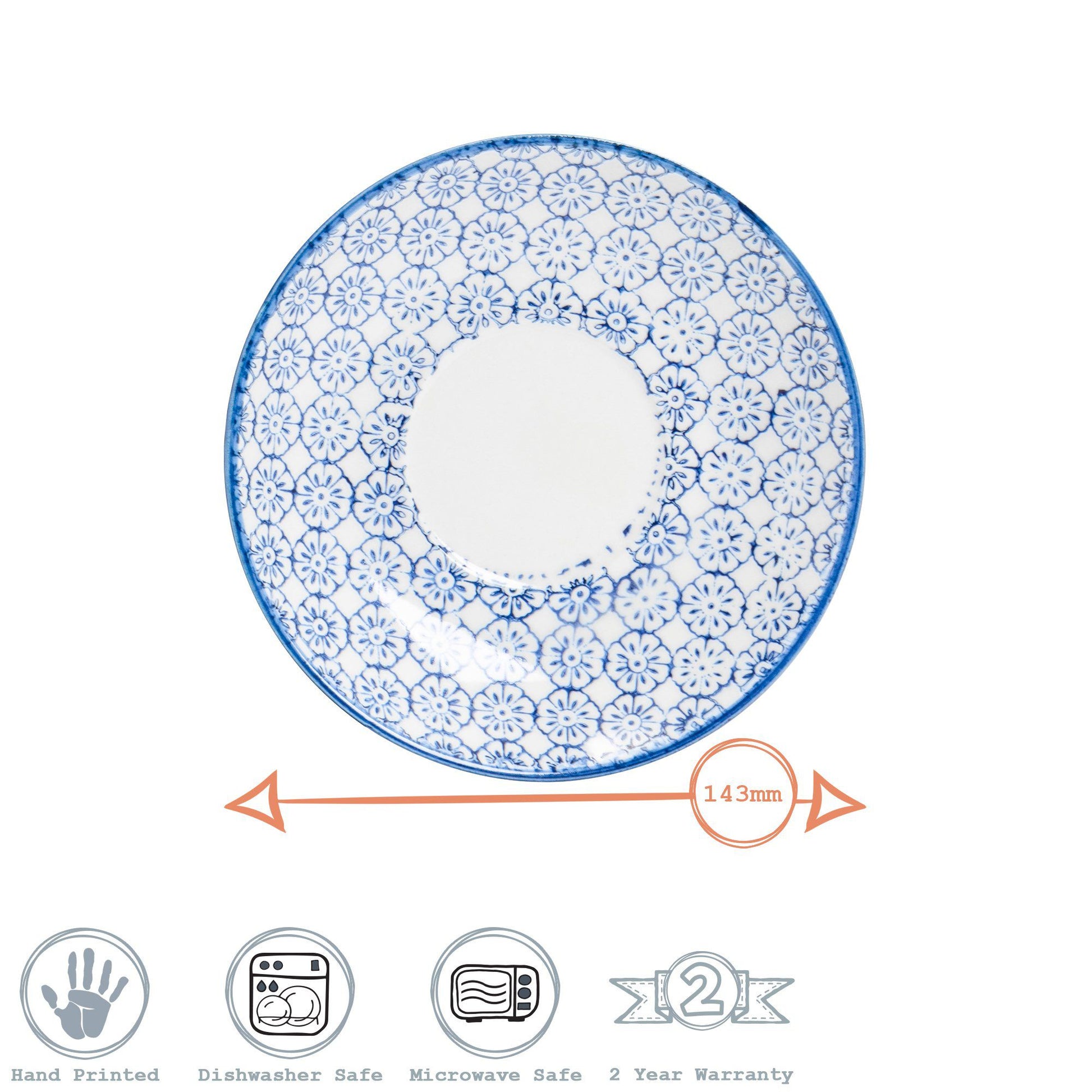 14.5cm Navy Hand Printed Stoneware Cappuccino Saucers - Pack of Six