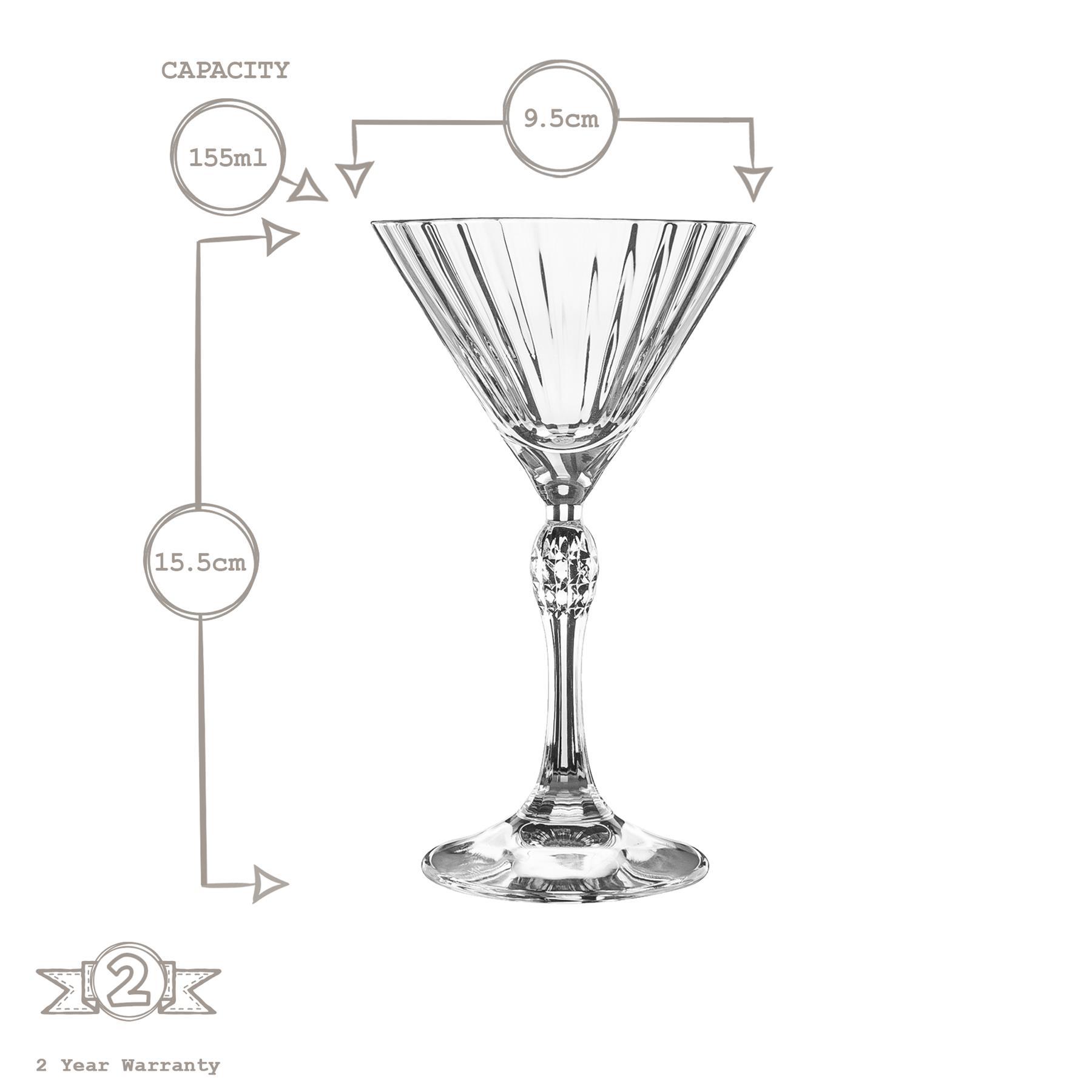 Add Art Deco opulence to your home bar or restaurant with this pack of 6 America '20s Martini Glasses from Bormioli Rocco.