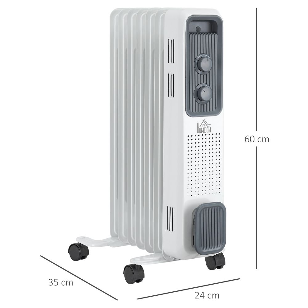 1630W Oil Filled Radiator, Adjustable Thermostat Safety switch, White