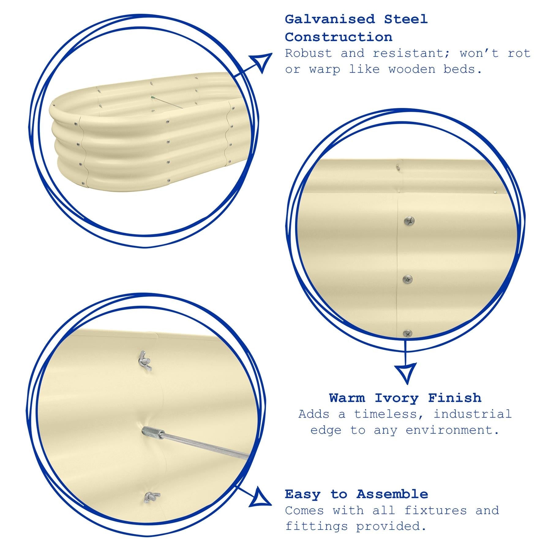 Forged from galvanised steel, these robust beds provide an economical alternative to those made from wood, which can be susceptible to rotting, warping and insect infestation.