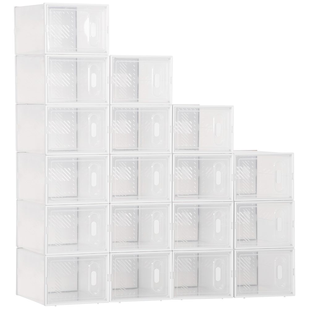 18PCS Clear Shoe Box, Plastic UK/EU Size 8.5/43, 25 x 35 x 19cm