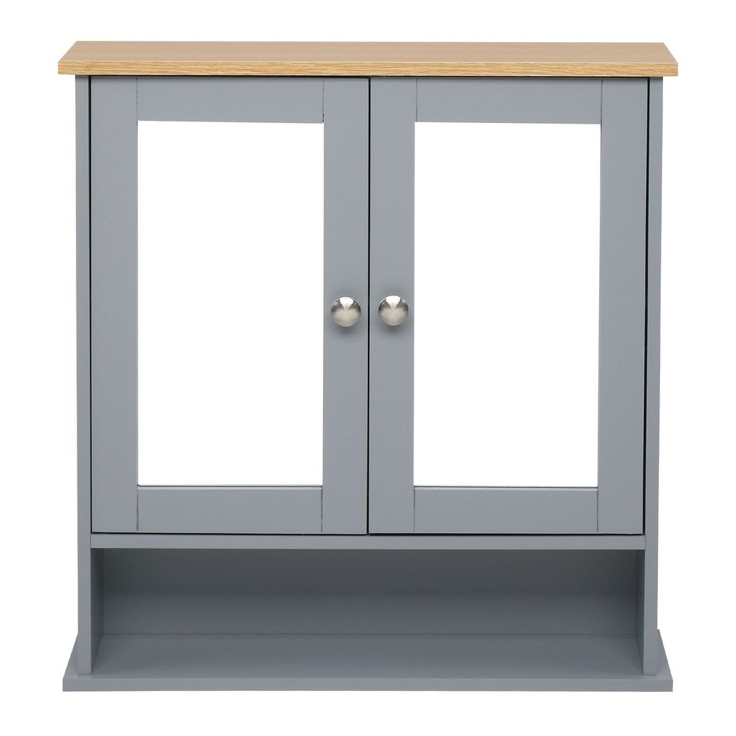 2 Mirror Door 1 Storage Layer MDF Spray Paint Bathroom Wall Cabinet Gray