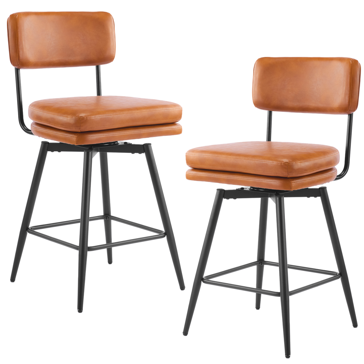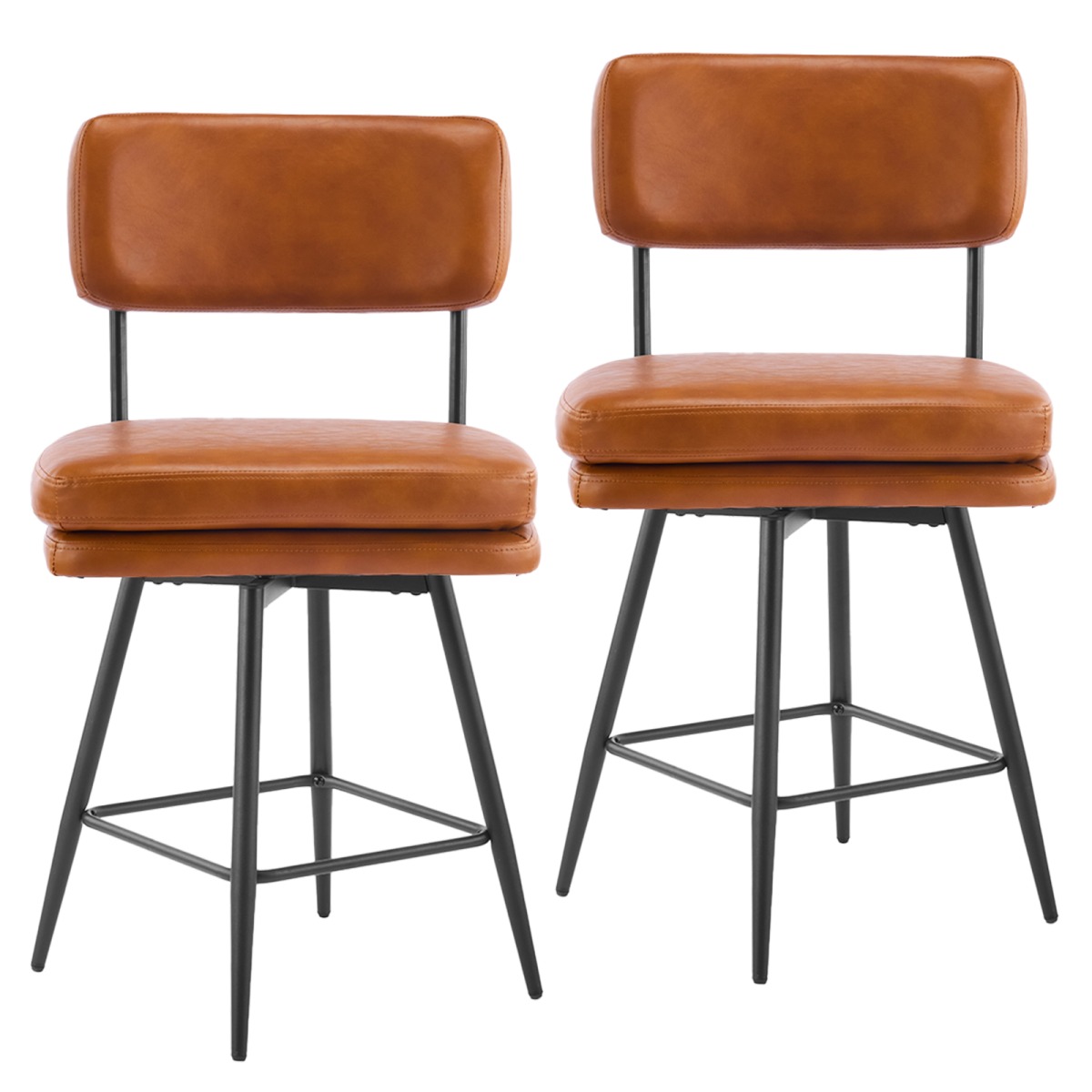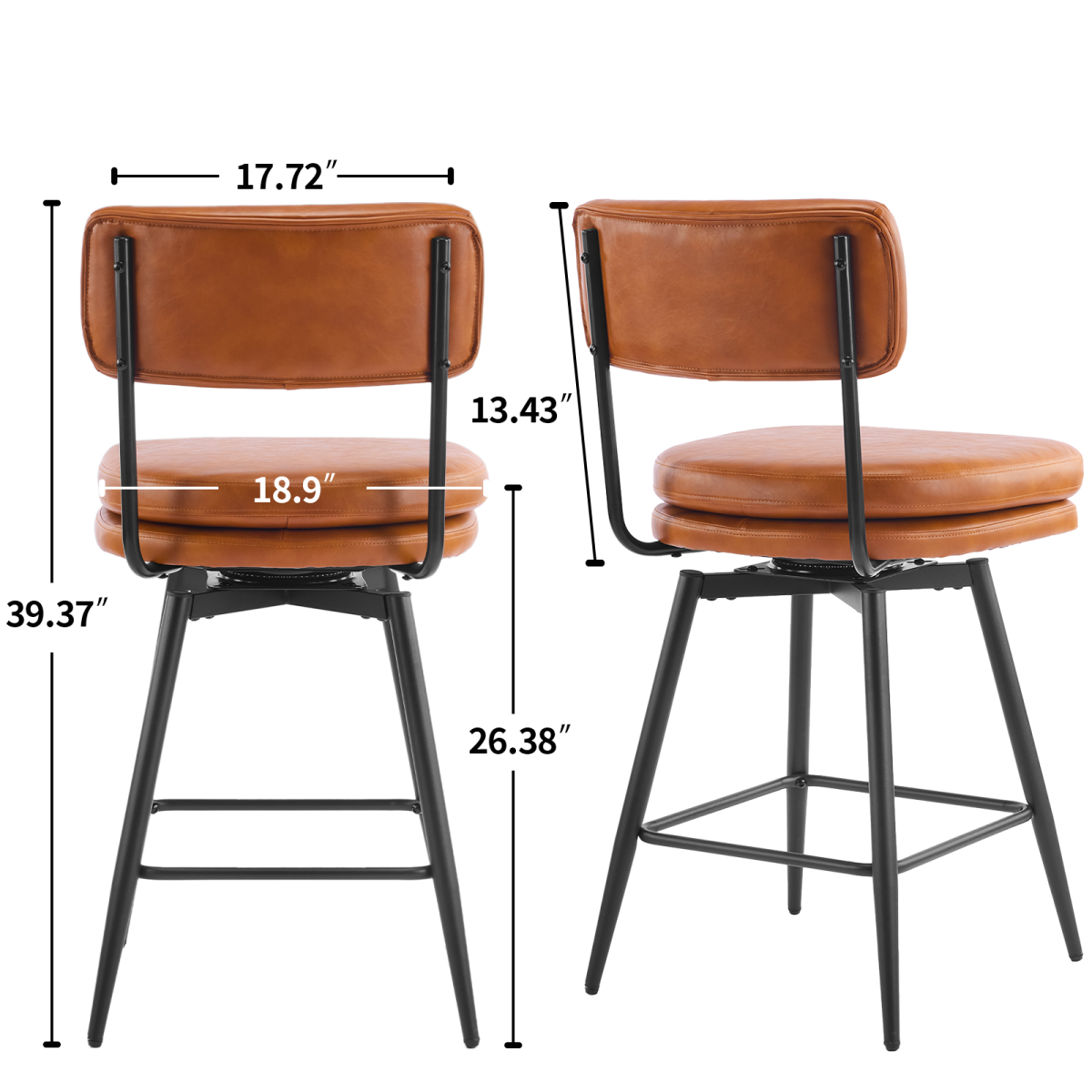 2 Pcs Brown PU Swivel Bar Stools with Removable Backrest & Double-Layer Seat, Metal Legs
