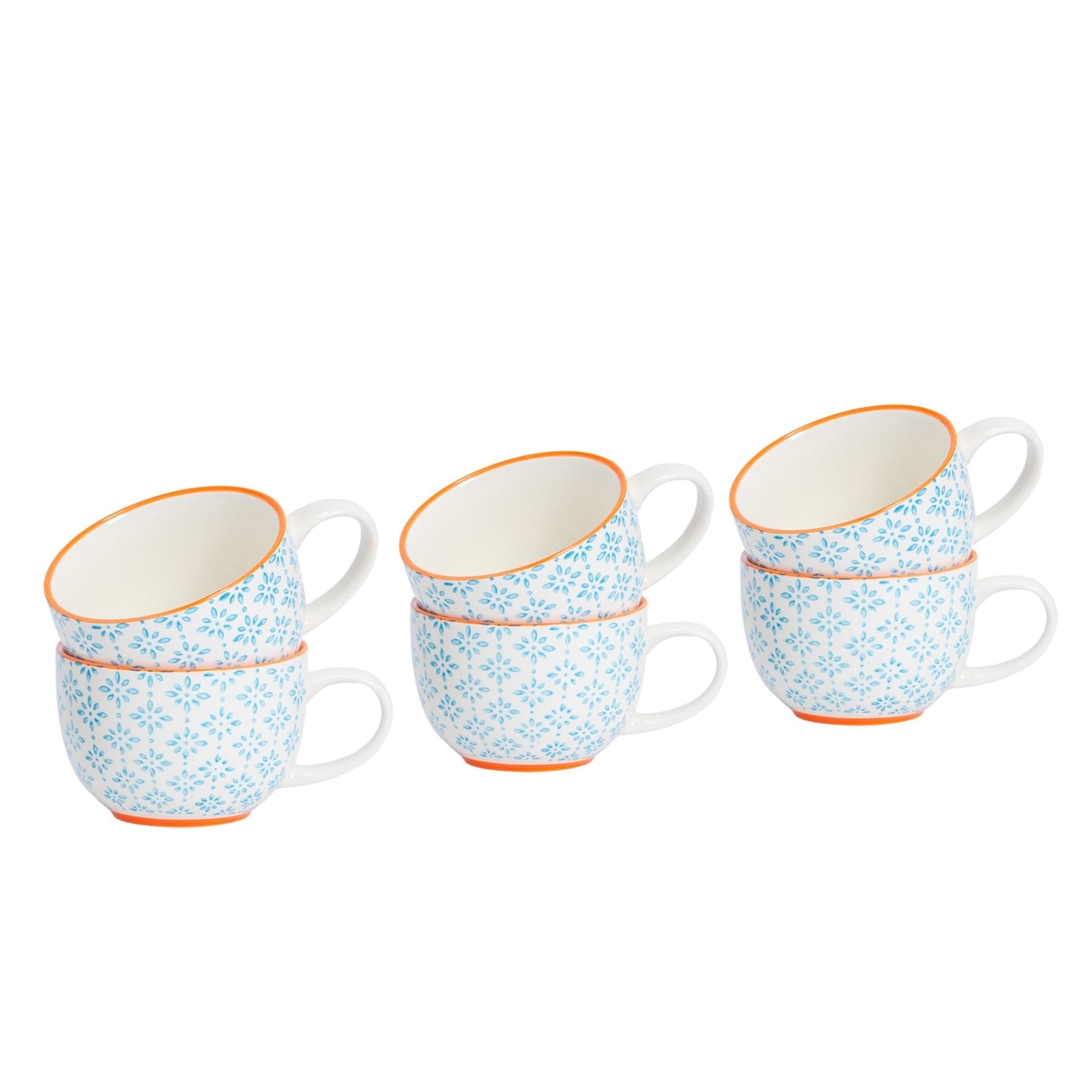 250ml Blue Hand-Printed Stoneware Cappuccino Cups - Pack of Six