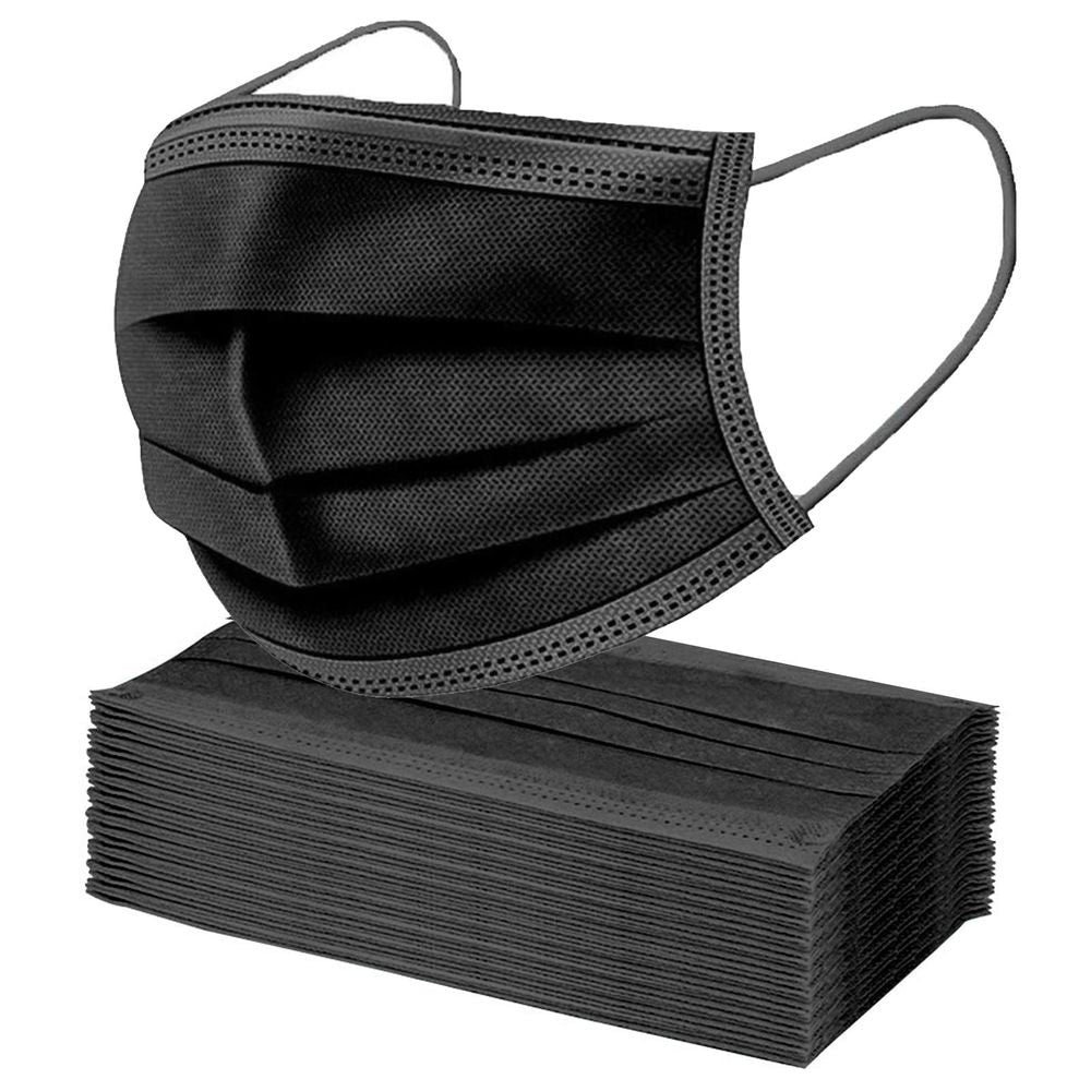25Pk Disposable Face Masks BLACK | High Filtration, Water Resistant | PMS-755017 | AS-05237
