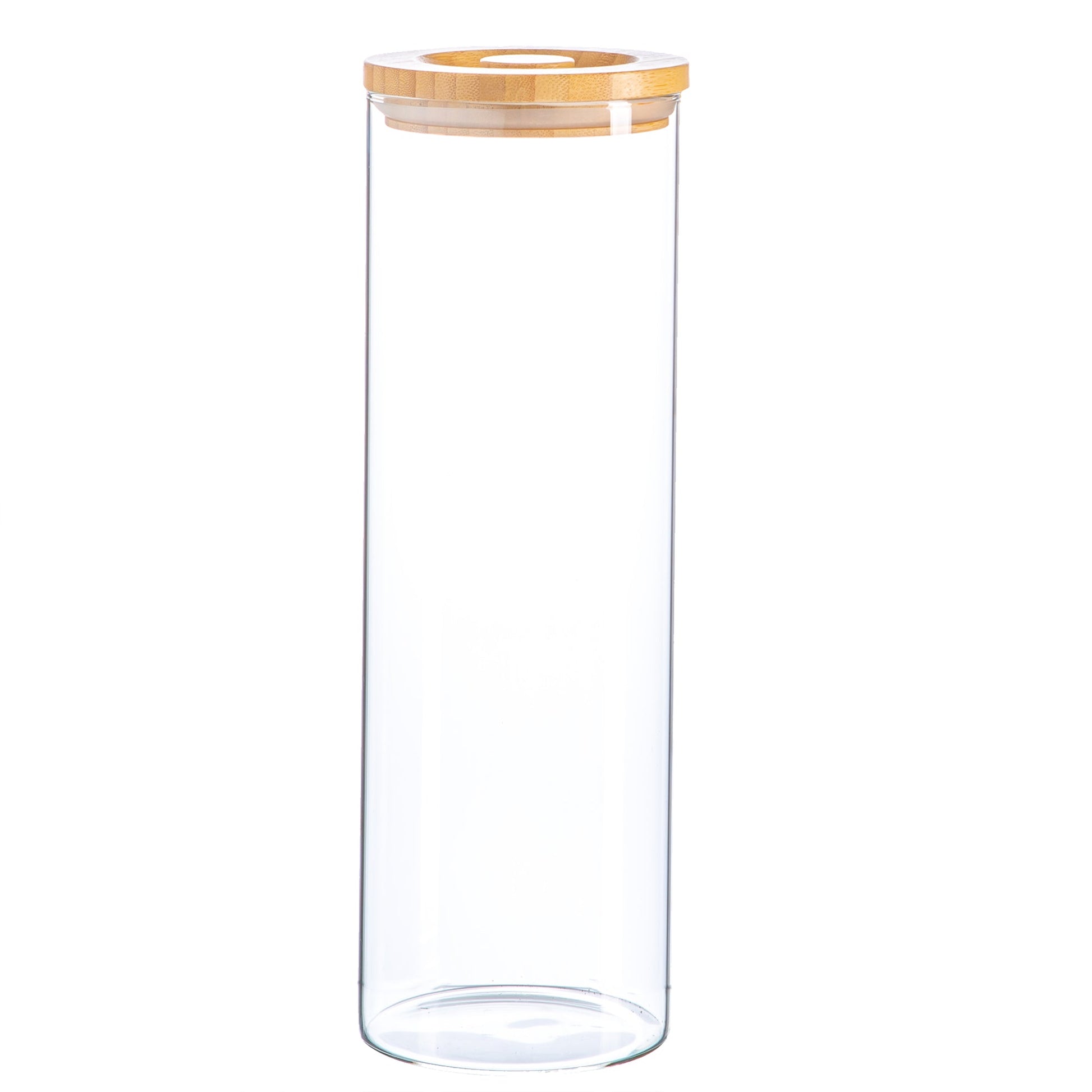 These Scandi Glass Storage Jars with wooden Lids are high-reaching cylinder canisters serving up cool, contemporary Scandi styling, while providing the perfect vessel for keeping contents freshly sealed.