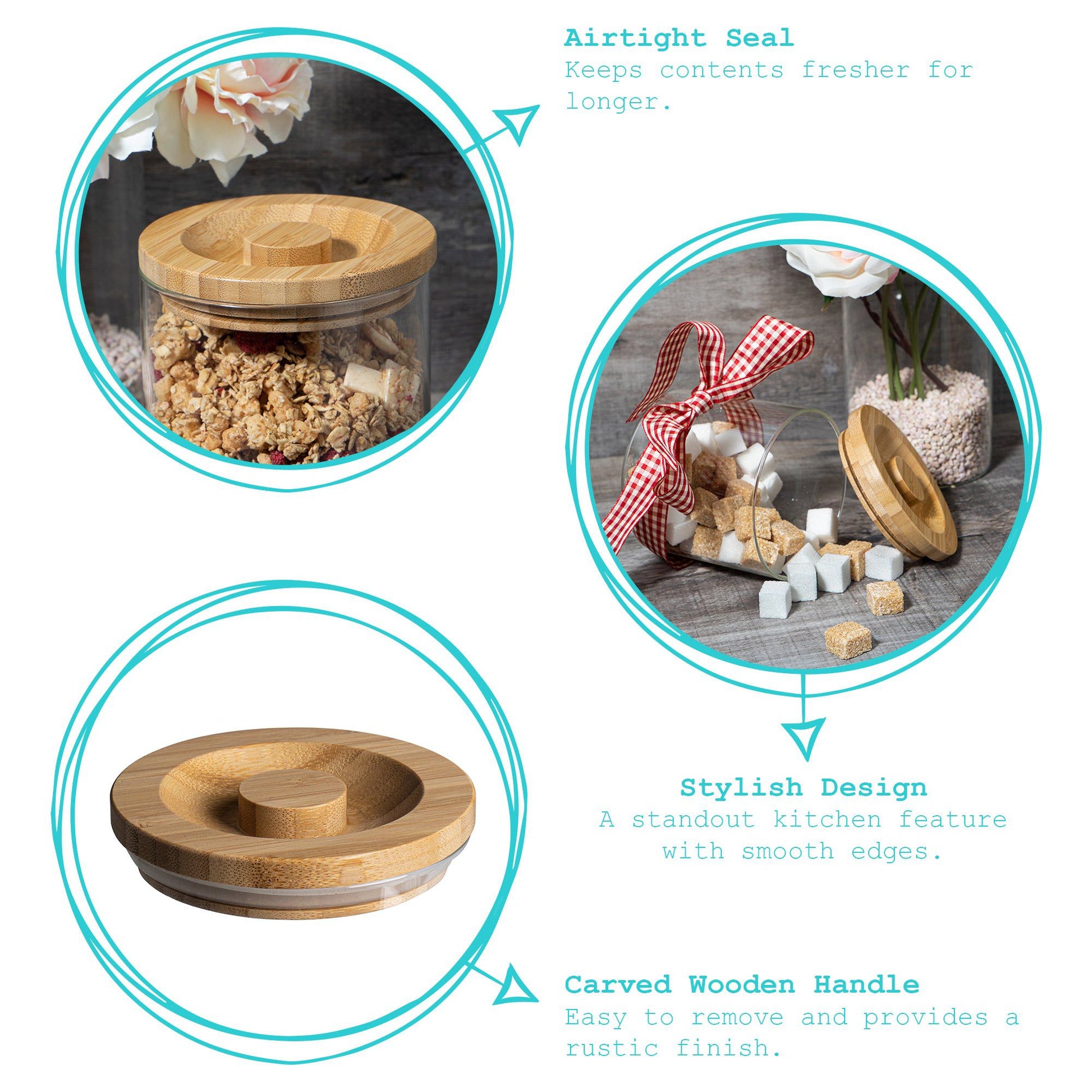 These storage jars come in five sizes - 550ml, 750ml, 1L, 1.5L, 2L.