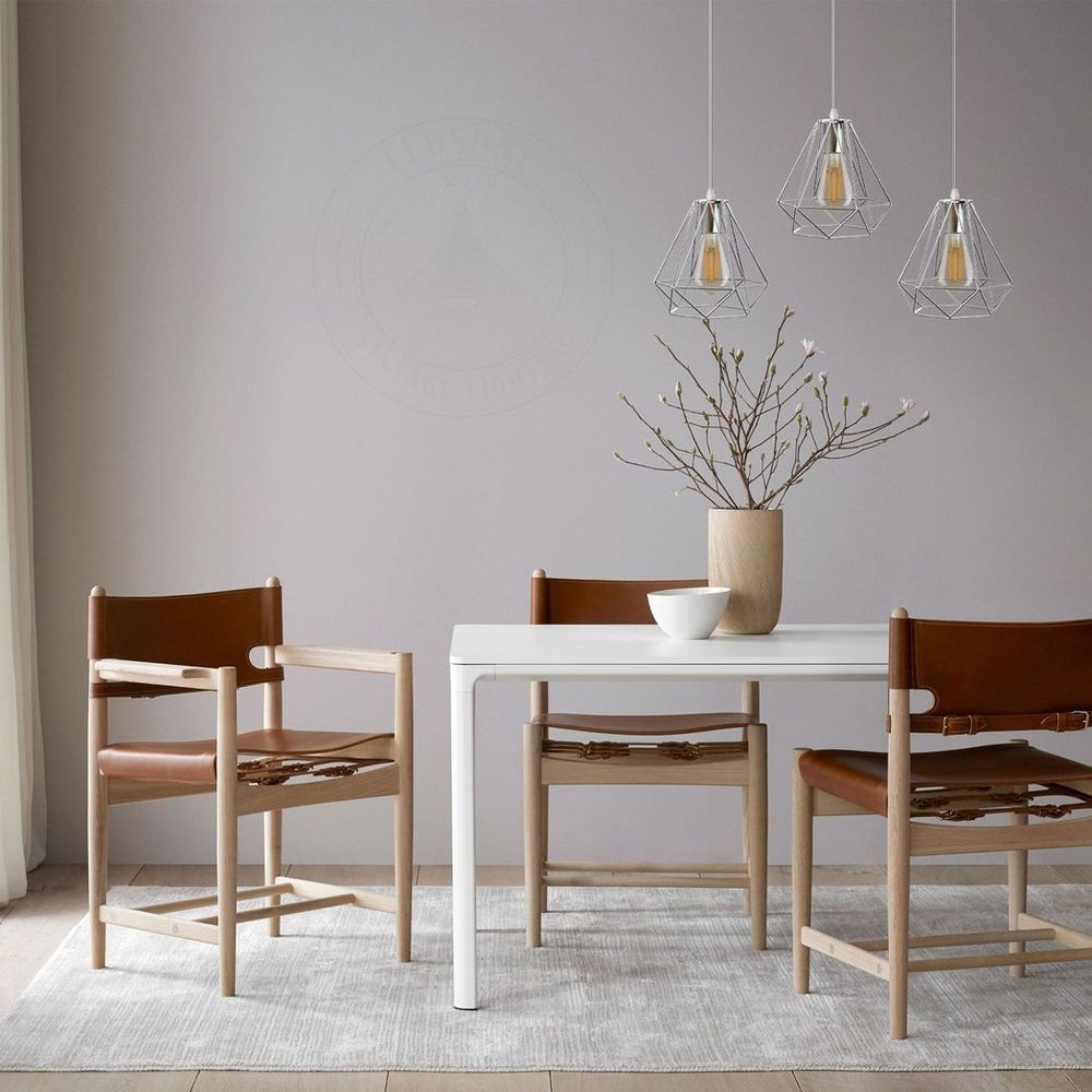3 Head Rectangle Base Chrome Vintage Metal 20cm Diamond Wire Cage E27 Base Ceiling Pendant Light