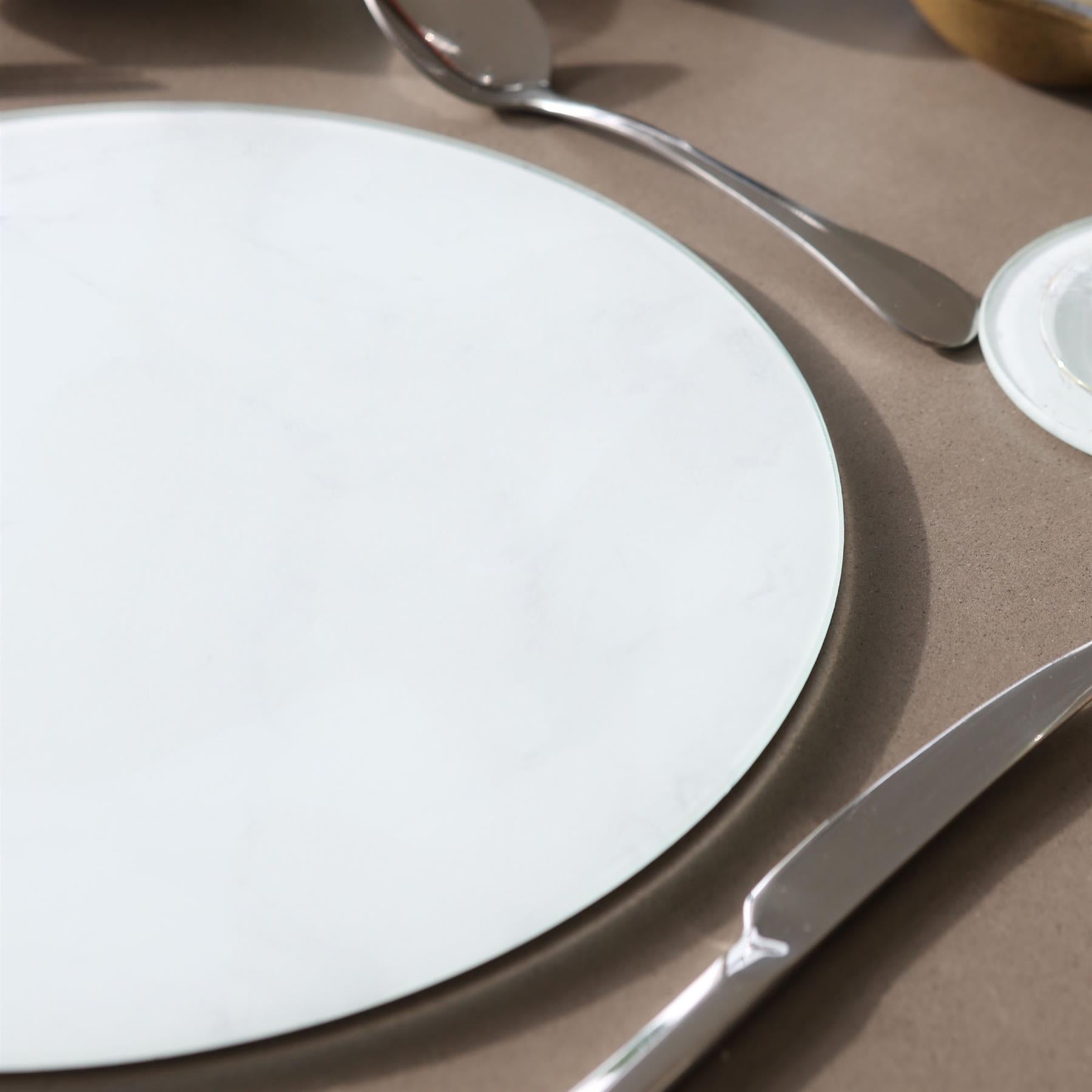 This set of 6 30cm Round Glass Placemats from Harbour Housewares serves to create a genuinely striking statement on any dining table, pairing strong circular angles with a luxurious shine.