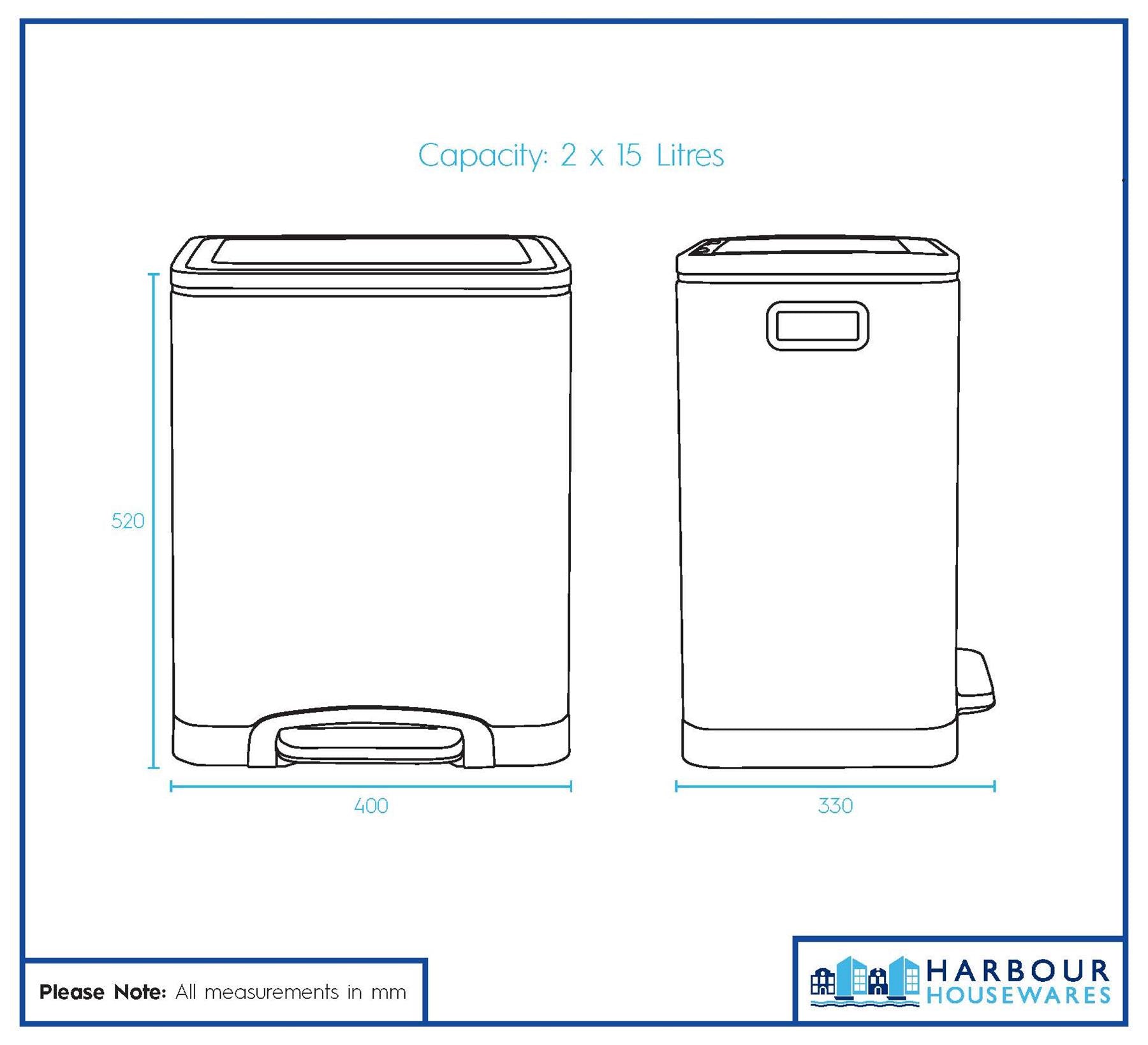 Keep your kitchen clean and tidy with this 30L Square Double Pedal Bin from Harbour Housewares.