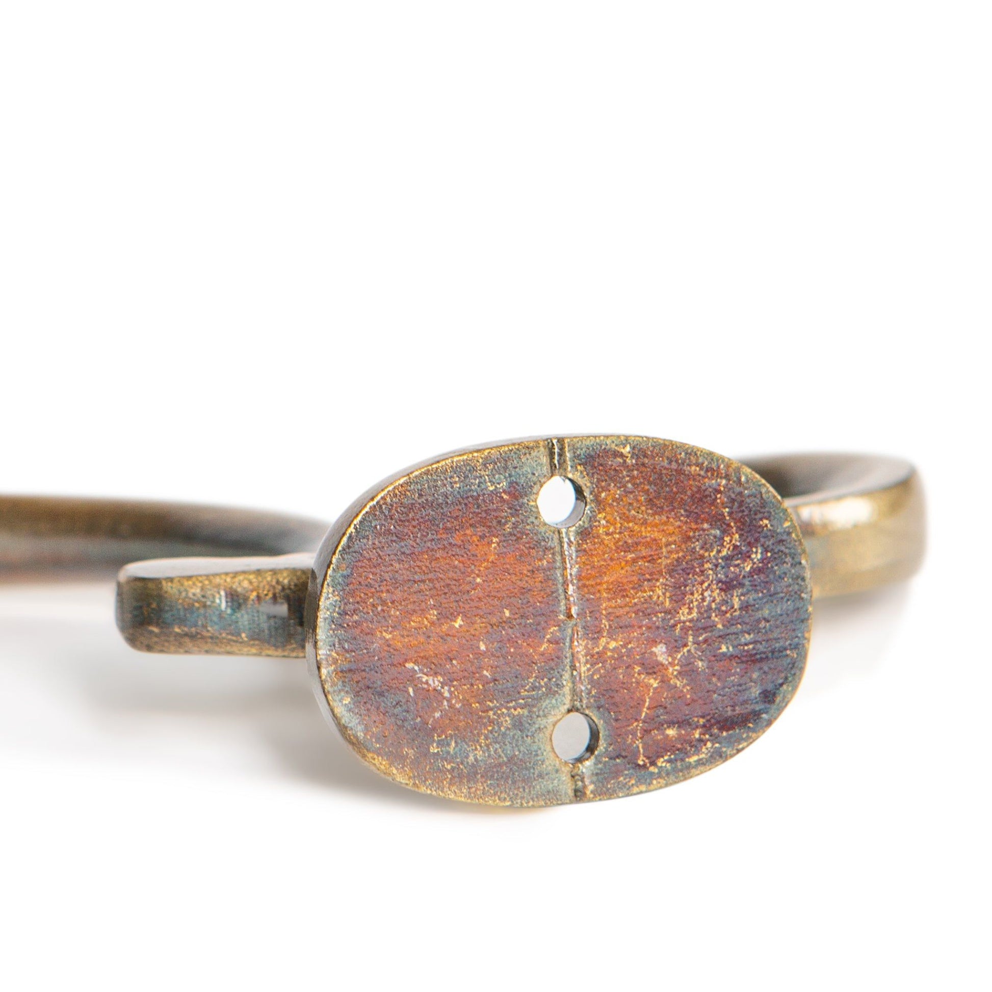 Forged from iron with a rustic raw finish, this durable dual-pronged hook provides an efficient space-saving storage solution for coats, cloaks, bathrobes, bags and more.