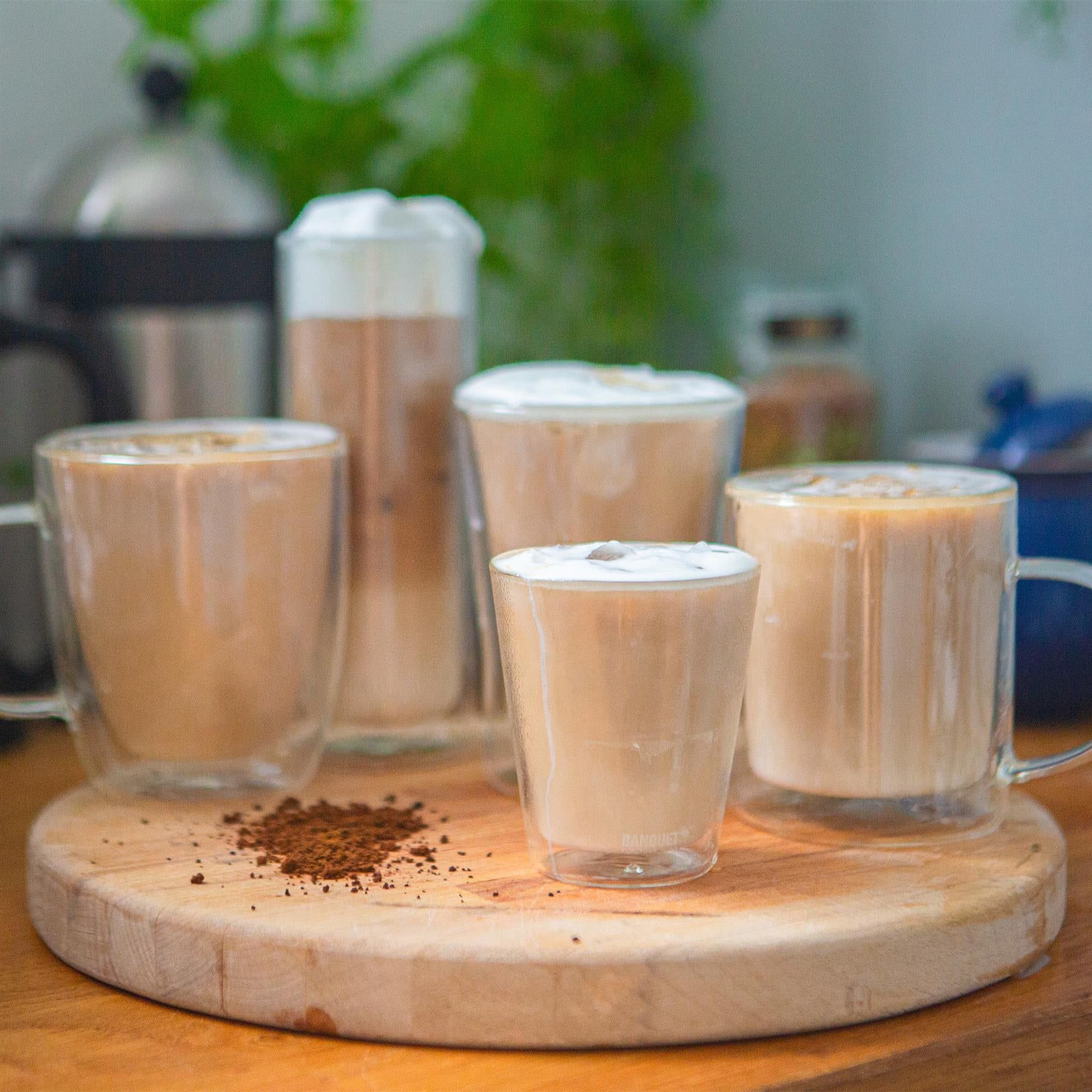 The clear glass design of these mugs adds a rich, full-bodied hit of contemporary style to coffee bars and kitchen cabinets alike, providing an elegant serving solution for cappuccino, macchiato, tea infusions and even cocktails!