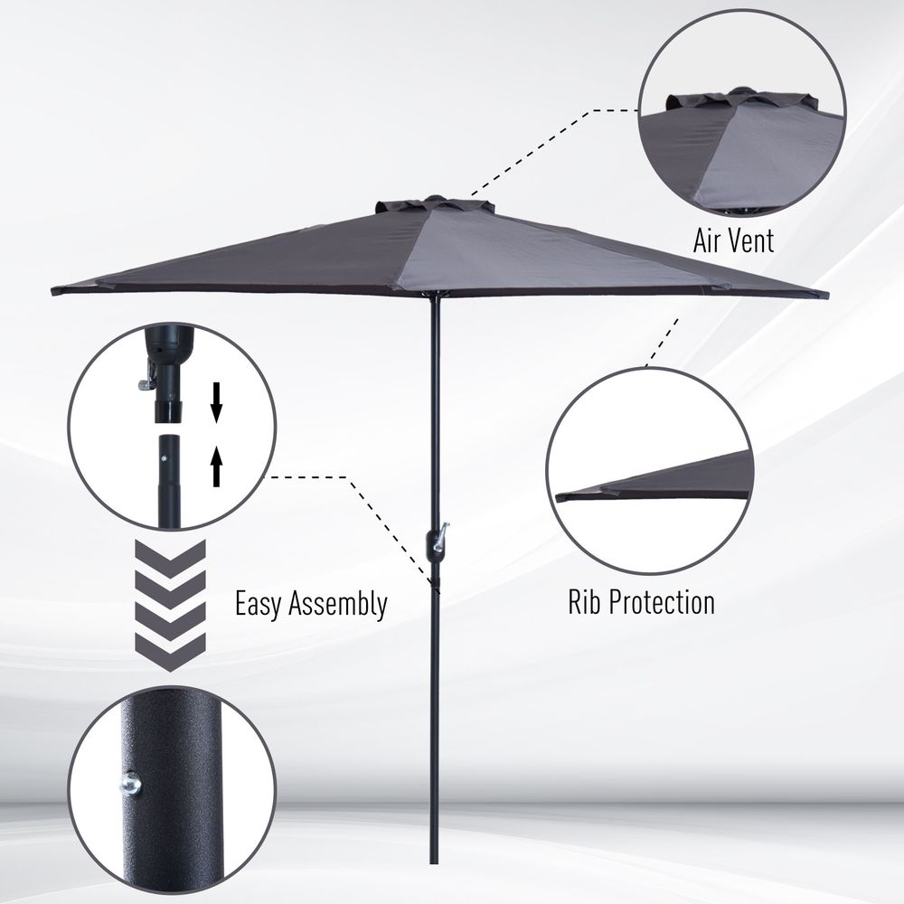 3M Half Round Umbrella - Grey Polyester/Aluminum. Perfect for Balcony or Small Garden. Durable & Easy to Clean.