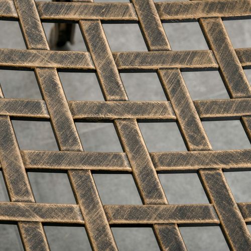 3Pc Cast Aluminium Garden Bistro Set for 2 Parasol Hole, Cushions Bronze