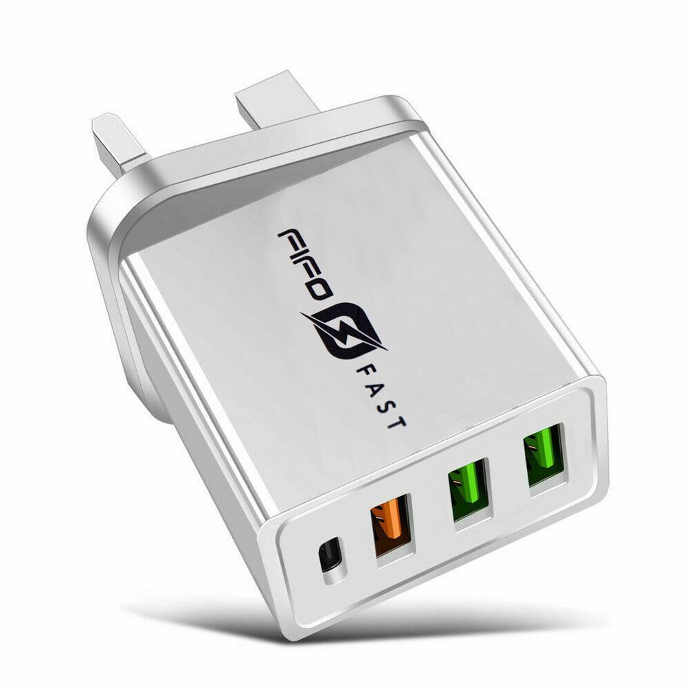 4 Port USB Type C Hub Wall Charger - Fast PD Quick Charge QC 3.0 Adapter, 33W