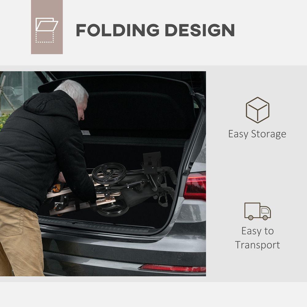4 Wheel Rollator Walker with Seat Adjustable Mobility Walker with Bag, Gold Tone