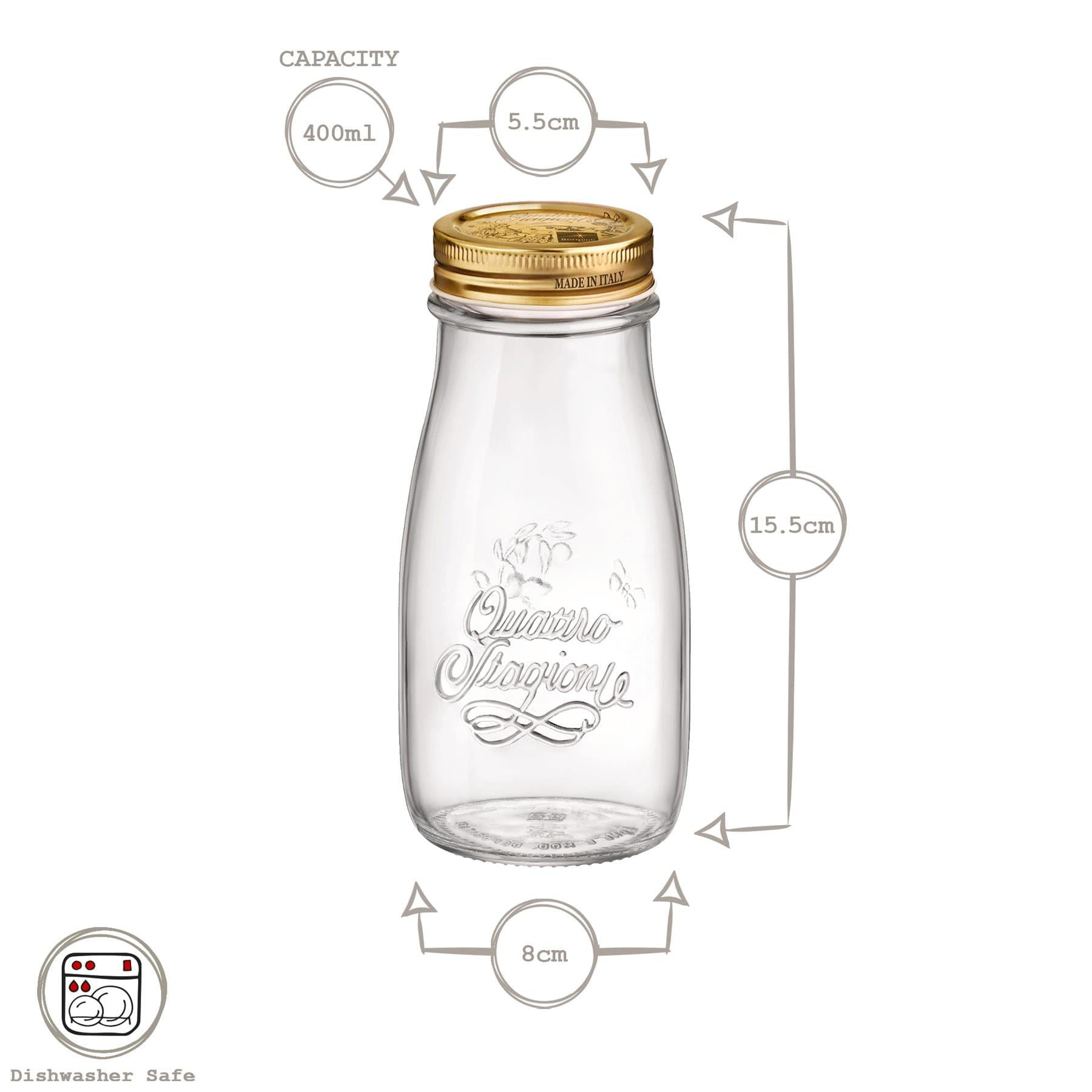400ml Quattro Stagioni Glass Bottle with Screw Top Lid