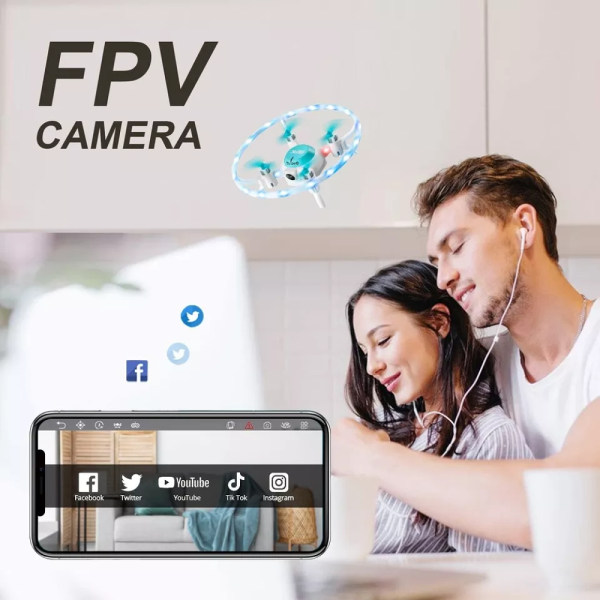 720P HD Images and Live Videos: V5 equipped with 720P HD Wi-Fi camera which can be adjusted to take better aerial photos and videos. With FPV transmission, you can see the sky from a live video through a specialized app on your phone.