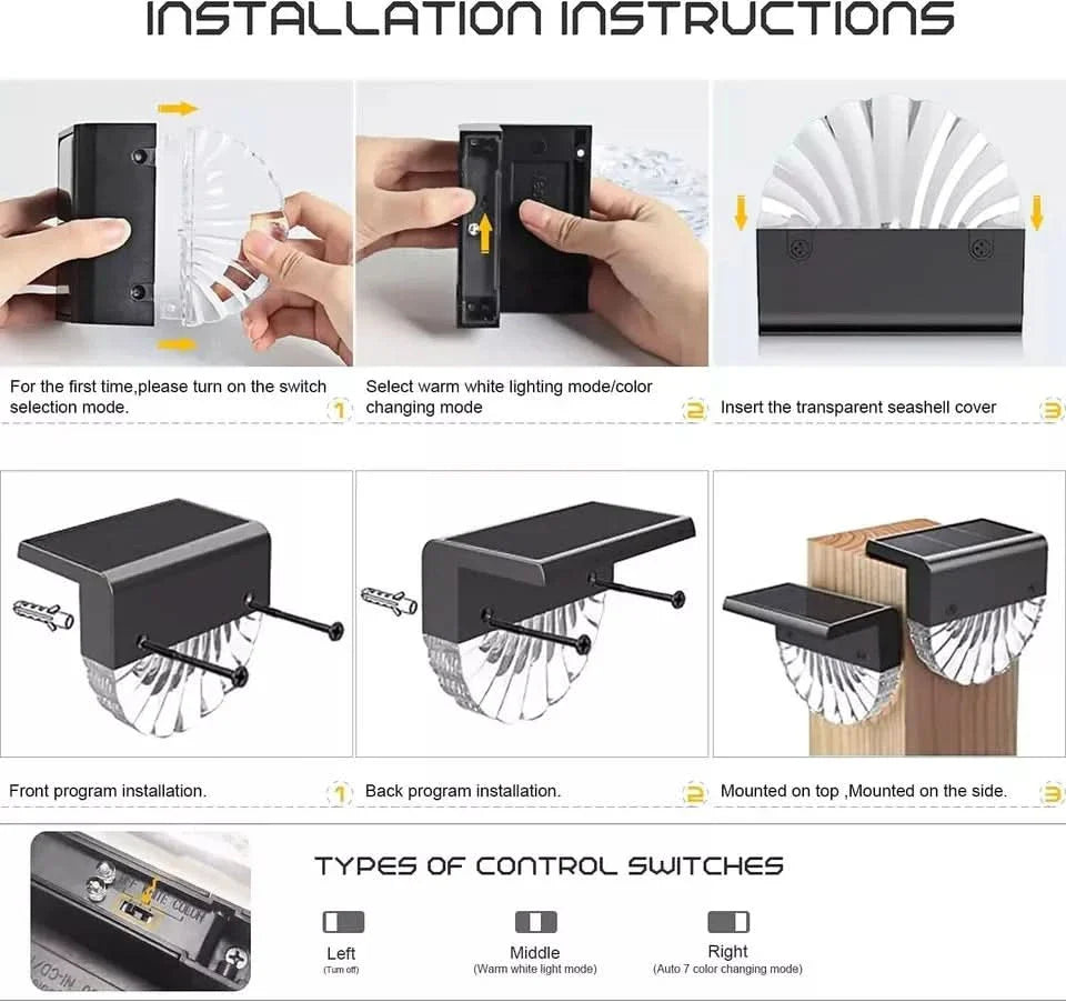 Perfect outdoor decoration This set of outdoor lights is ideal for decorating outdoor staircases, fences, garden, yard, patio, step, backyard, stair, decks, mailboxes and fence post.