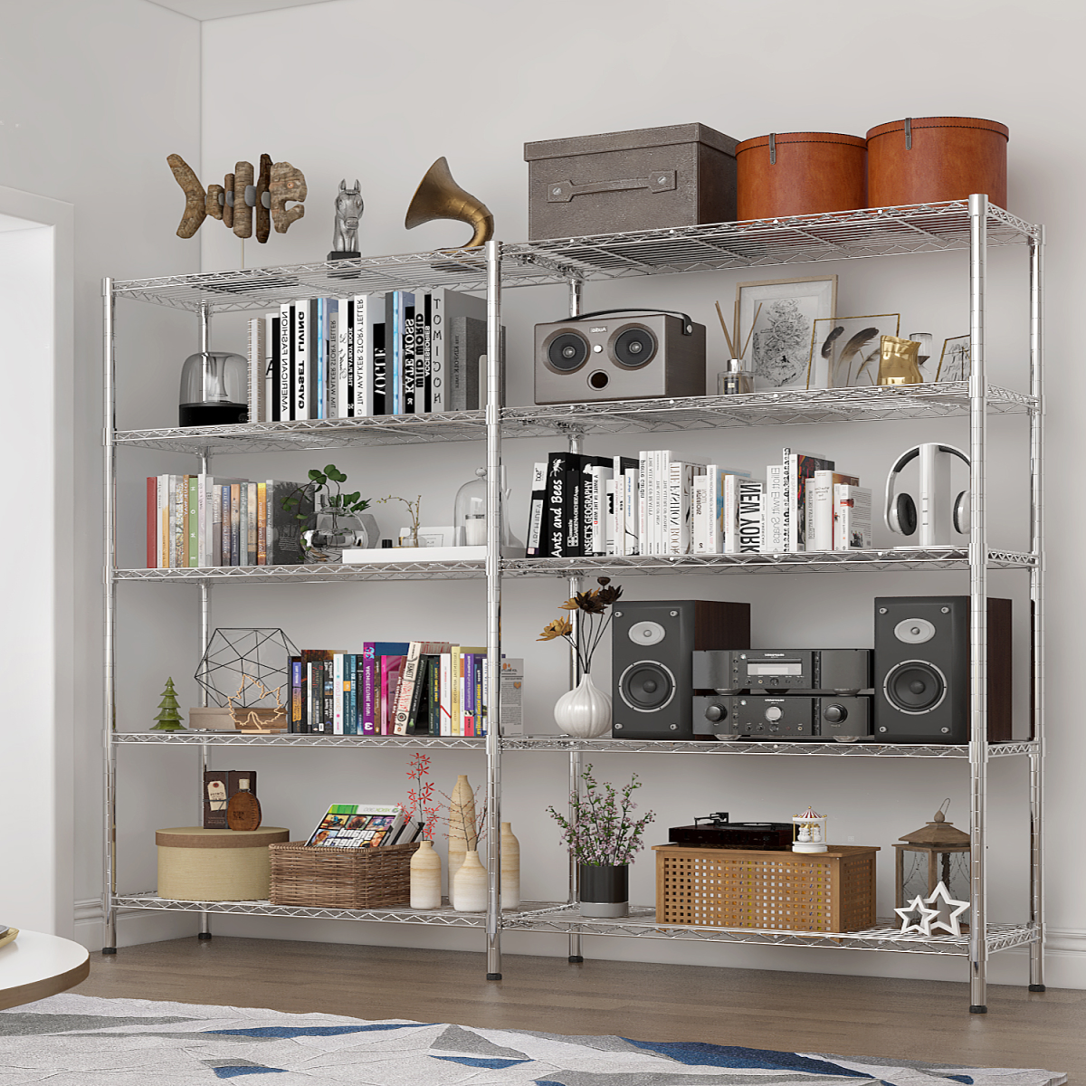 Maximize your storage and display space with this 5-tier double-row chrome-plated iron shelf! Featuring a spacious 177×40×180cm design, this versatile rack offers fully adjustable tier spacing to accommodate items of all sizes. The high-quality electroplated chrome finish ensures durability and a sleek, modern look that complements any decor. Equipped with adjustable stabilizing feet, it remains steady on uneven surfaces. Perfect for homes, offices, or retail stores, this lightweight (16.7kg) yet sturdy shelf is ideal for organizing books, tools, plants, or merchandise. Conveniently packaged (91.5×41.5×33.5cm) for easy shipping and assembly.