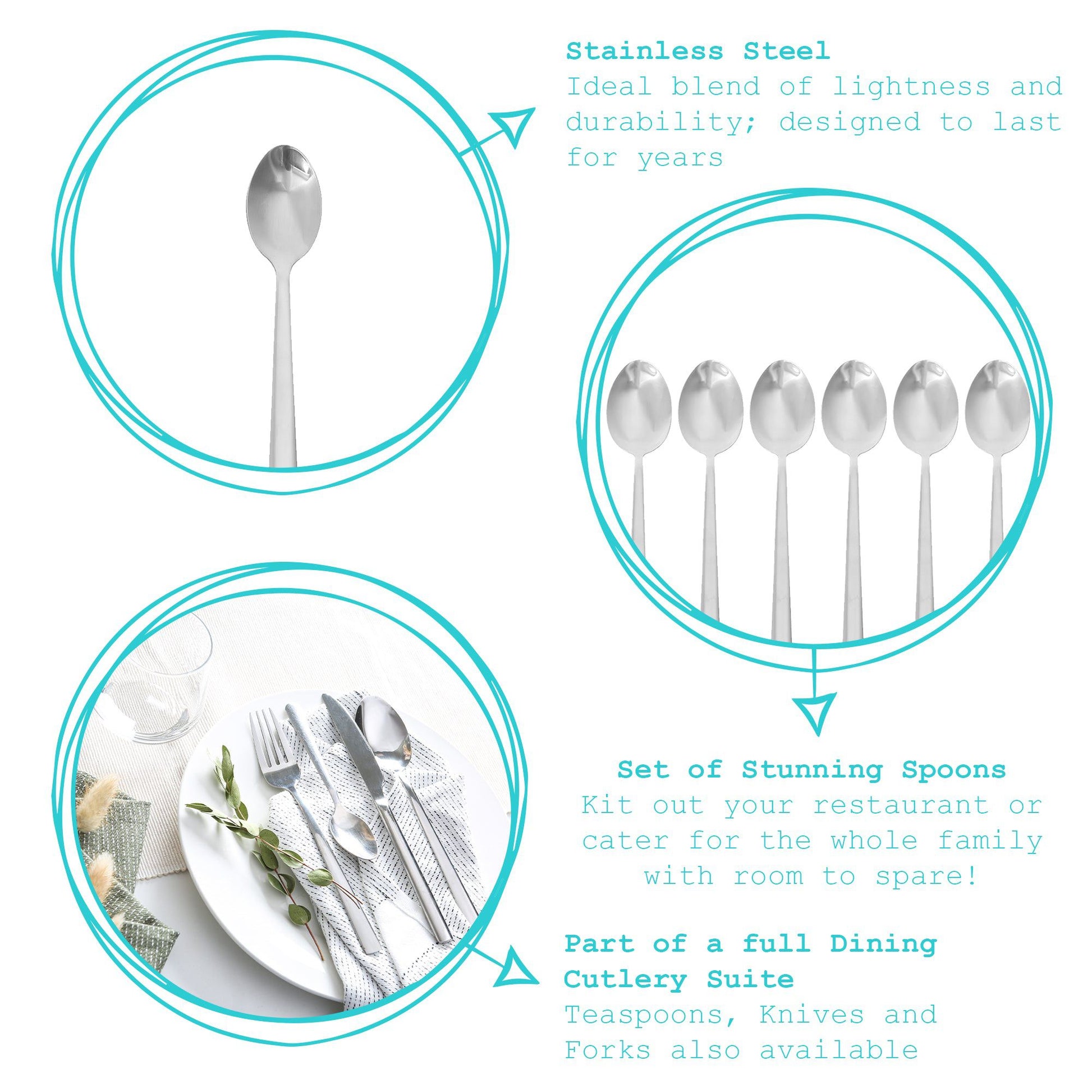 Part of a full dining flatware set, these teaspoons offer an optimum blend of lightness and durability; perfect for everyday use whether at home or in a professional cafe / restaurant.