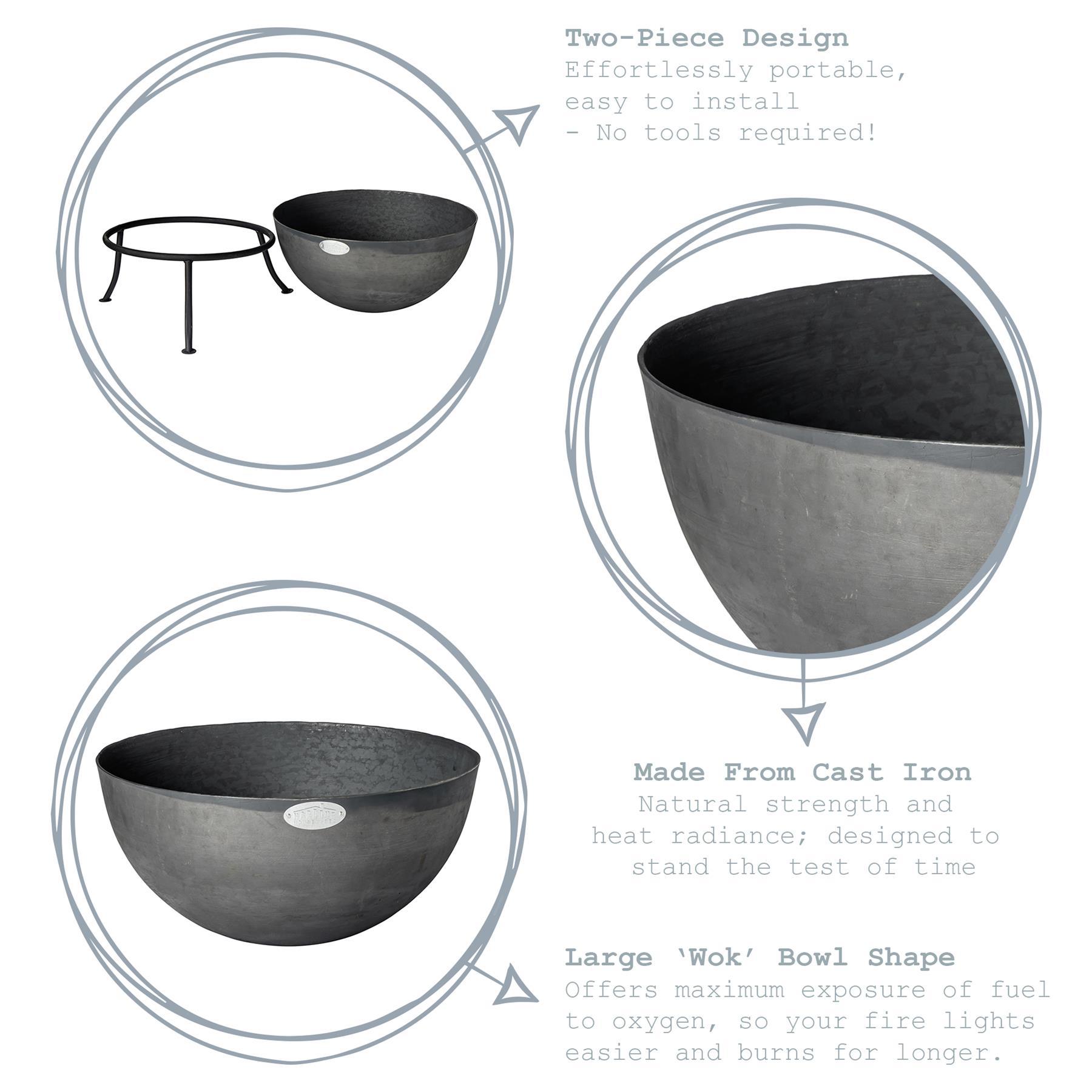 Crafted from durable cast iron,our classic fire pit offers excellent heat radiation, creating the perfect space for friends and family to gather round. The tripod construction offers excellent stability on uneven terrain, with a unique, two-piece design that completely eliminates the need for additional nuts and bolts, making assembly a doddle and allowing you to easily transport the party with you, wherever you go.