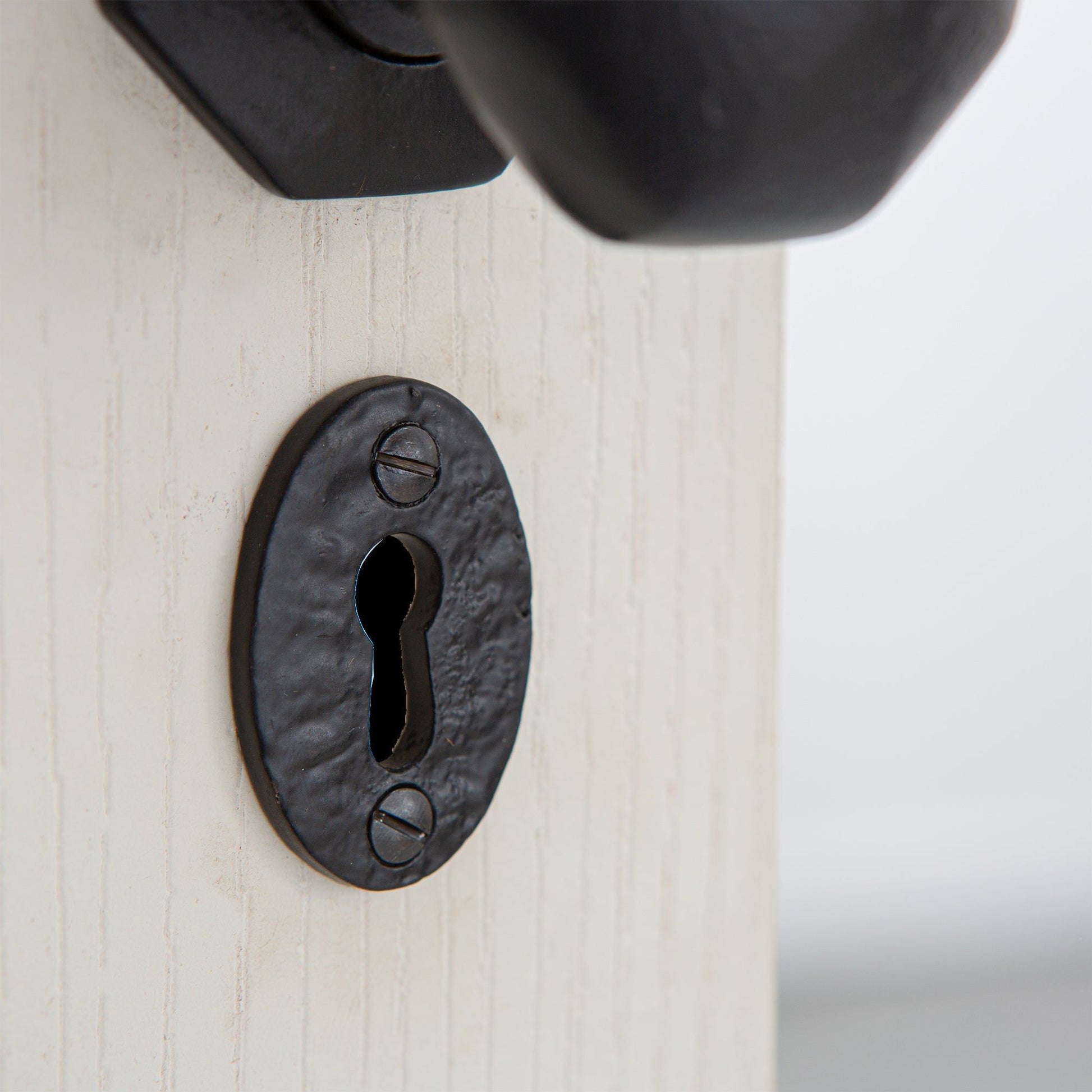 Forged from iron with a rustic raw finish, this doorknob will add an immediate air of rustic charm and character to any entryway. The included escutcheon plate provides the perfect finishing touch.