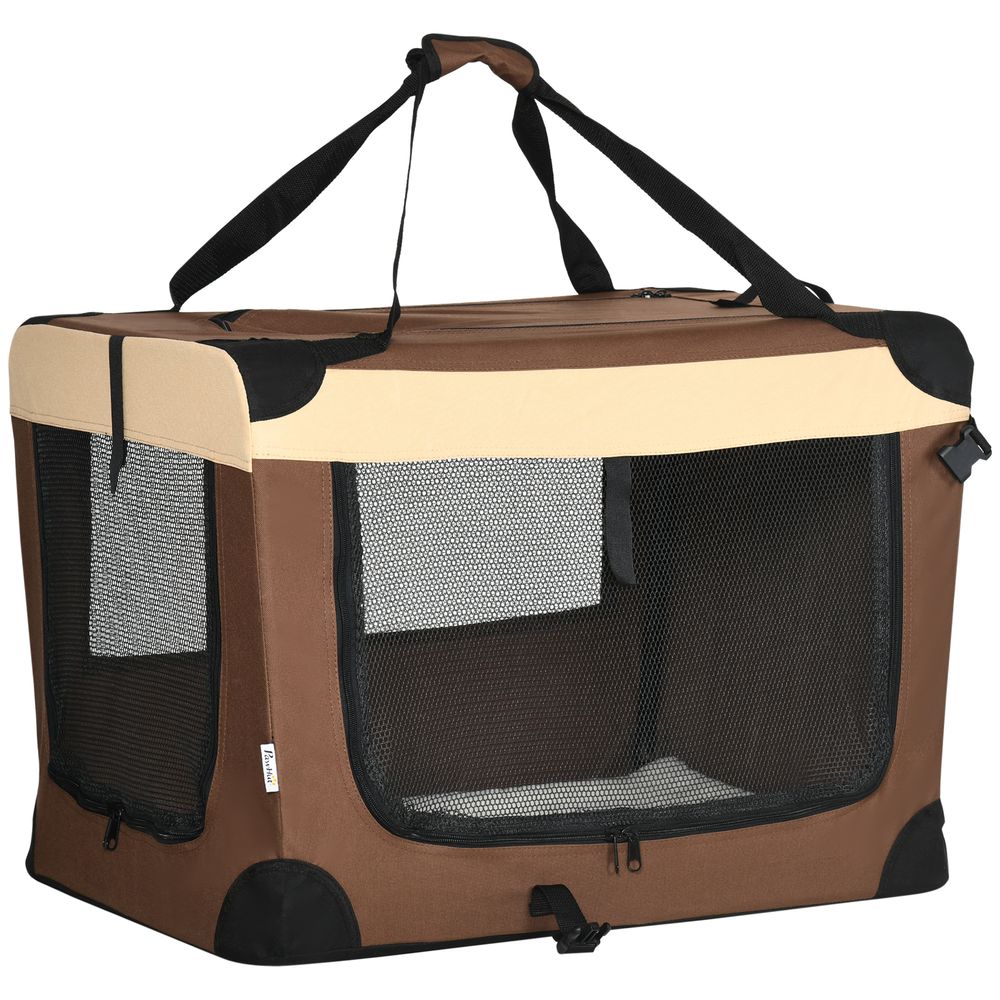 70cm Foldable Pet Carrier w/ Cushion for Mini Dogs and Cats - Brown Pawhut