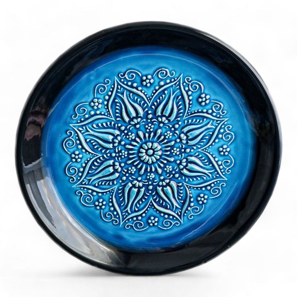 Coated with Lead Free Glaze (Safe Food) and After hand painting and drawing applications are made, it is baked between at 900 and 1000 °C.