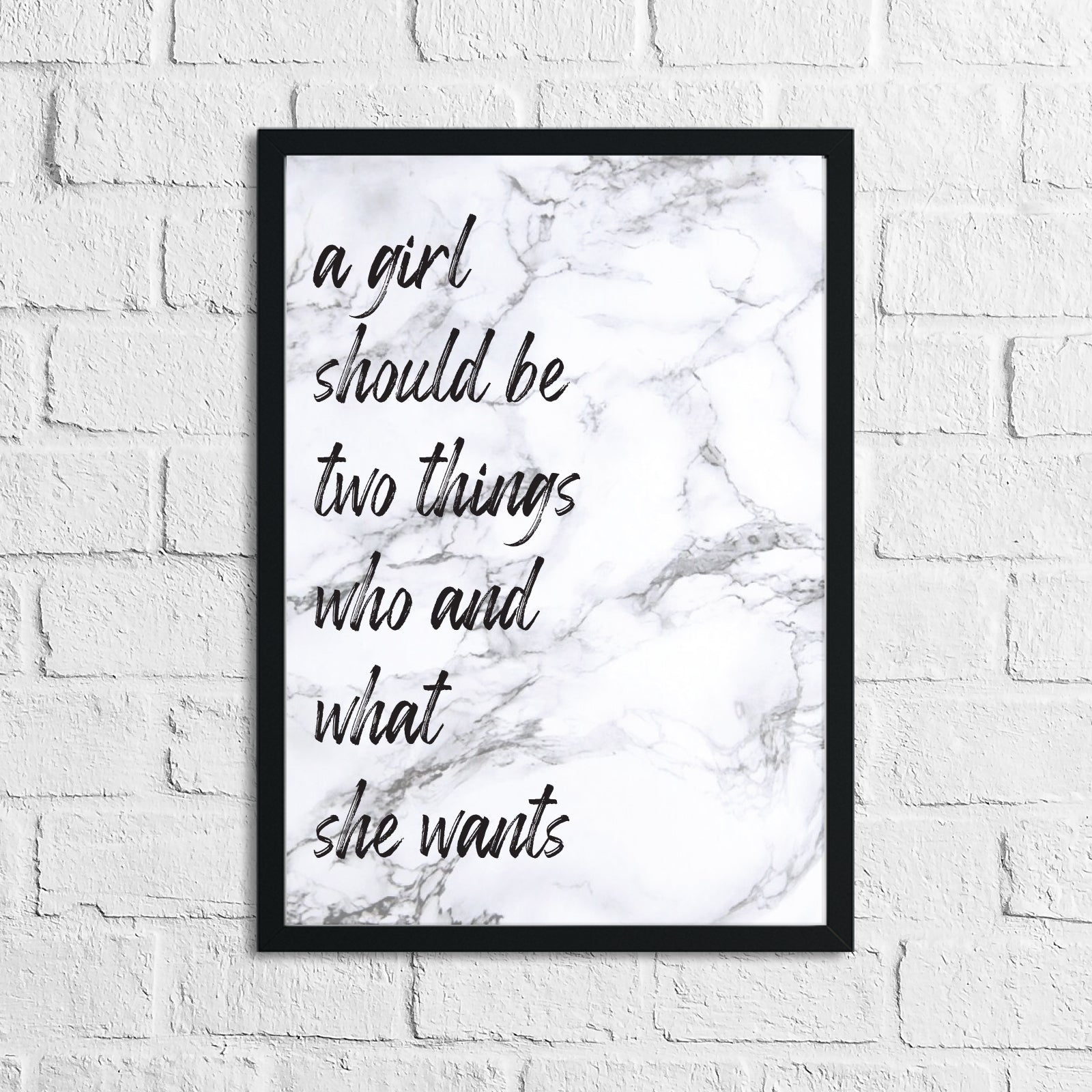 A Girl Should Be Two Things Marble Inspirational Simple Wall Home Decor Print (With Or Without Marble)