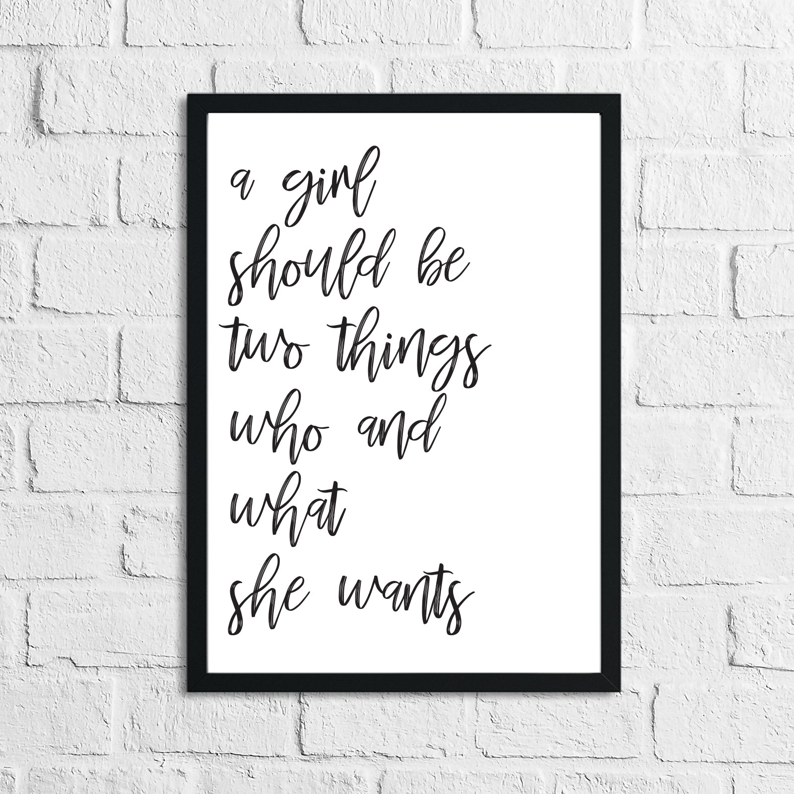 A Girl Should Be Two Things Script Inspirational Simple Wall Home Decor Print