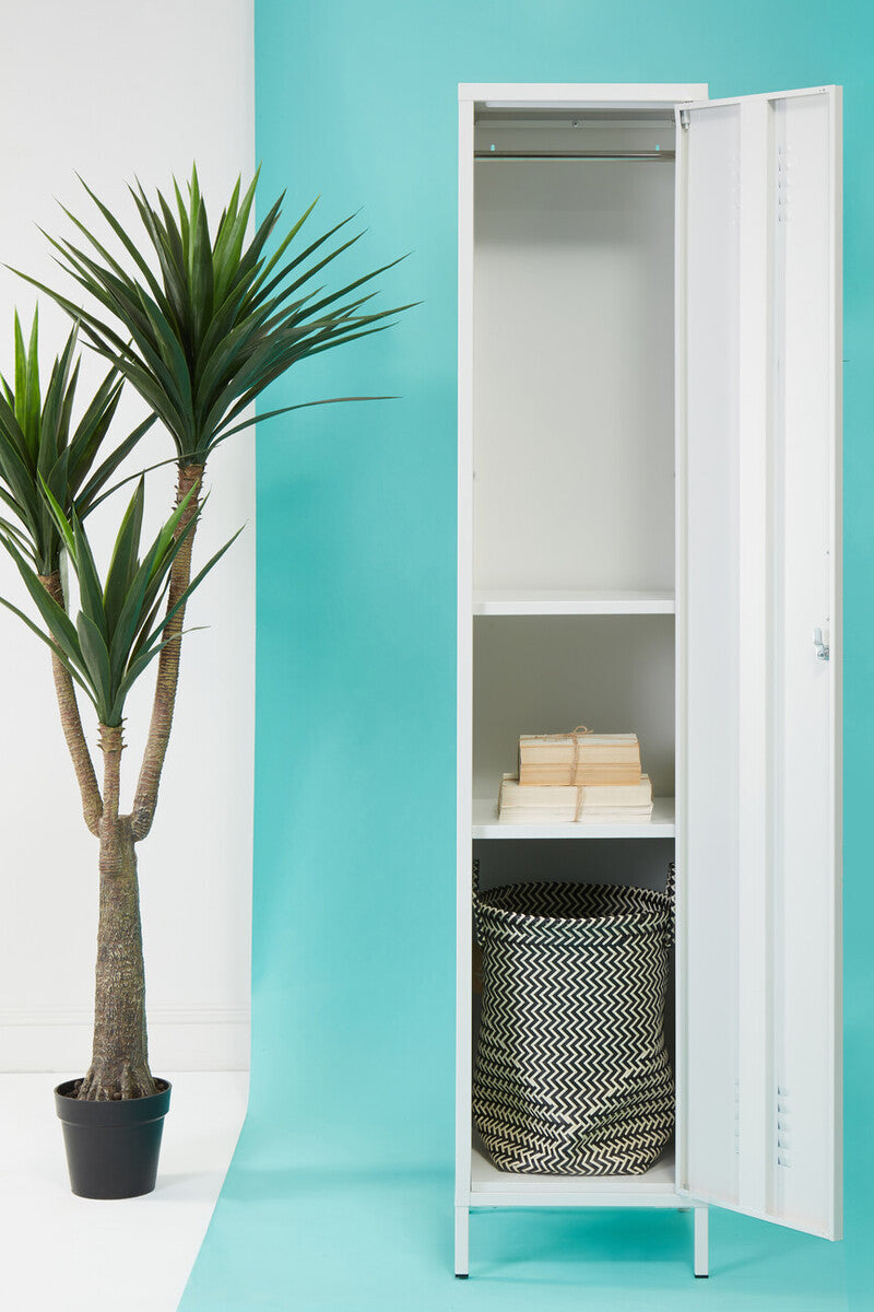 Ventilation slots discreetly refresh the interior, a helpful touch for gyms, utility rooms, and home offices. The white powder-coated surface resists marks and is easy to maintain, making it ideal for daily traffic and shared areas.