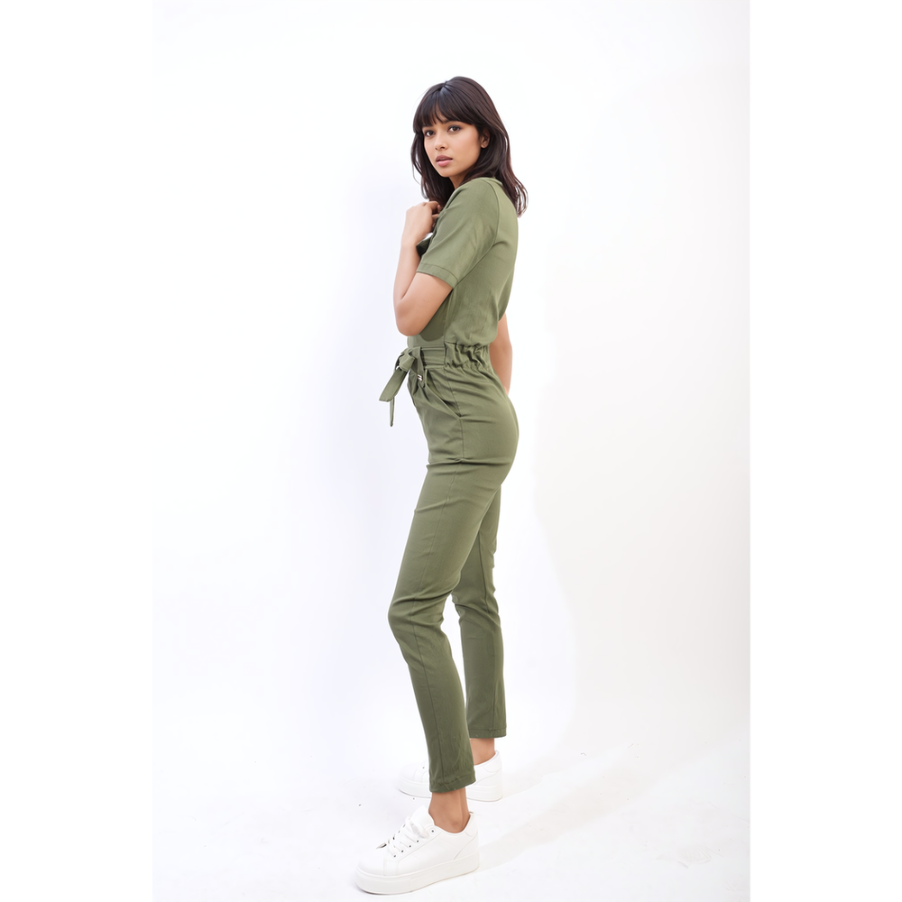 Adeline Collared V-Neck Zip Jumpsuit with Tie Belt: Stylish, Versatile, and Comfortable