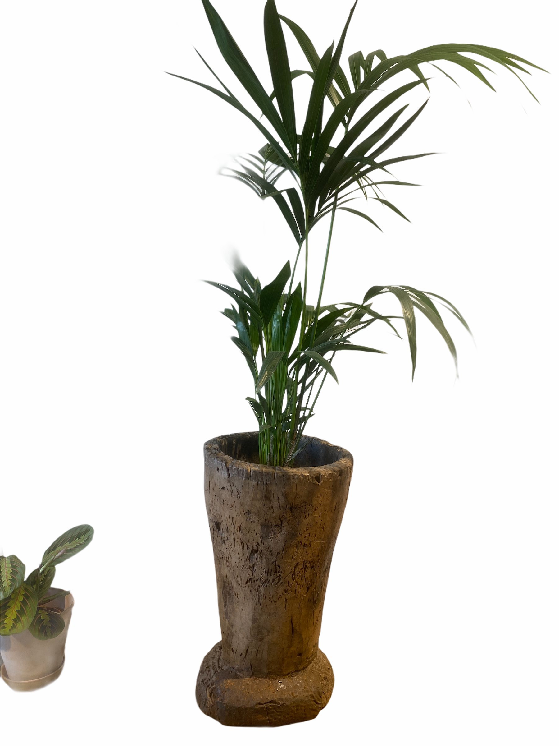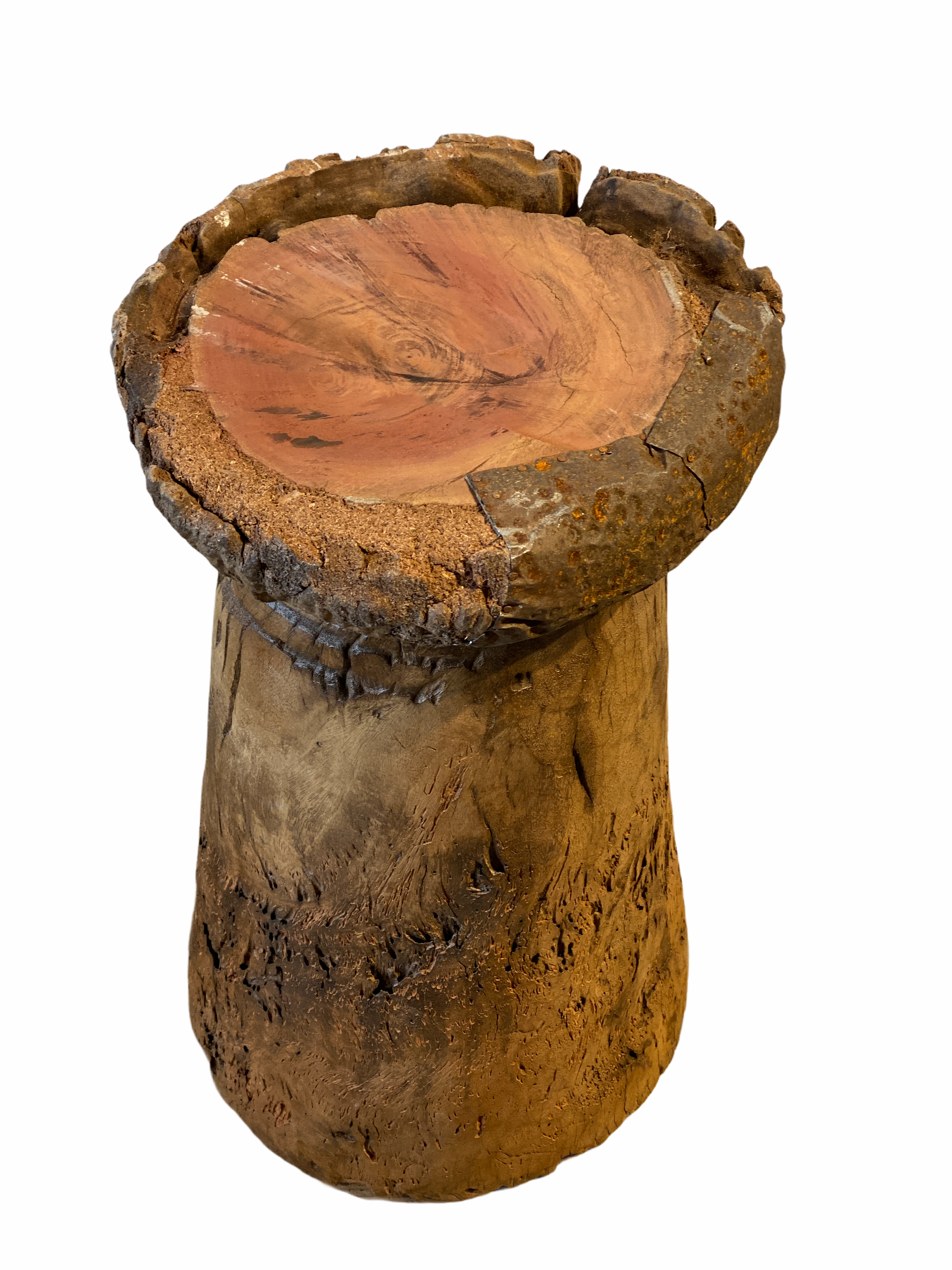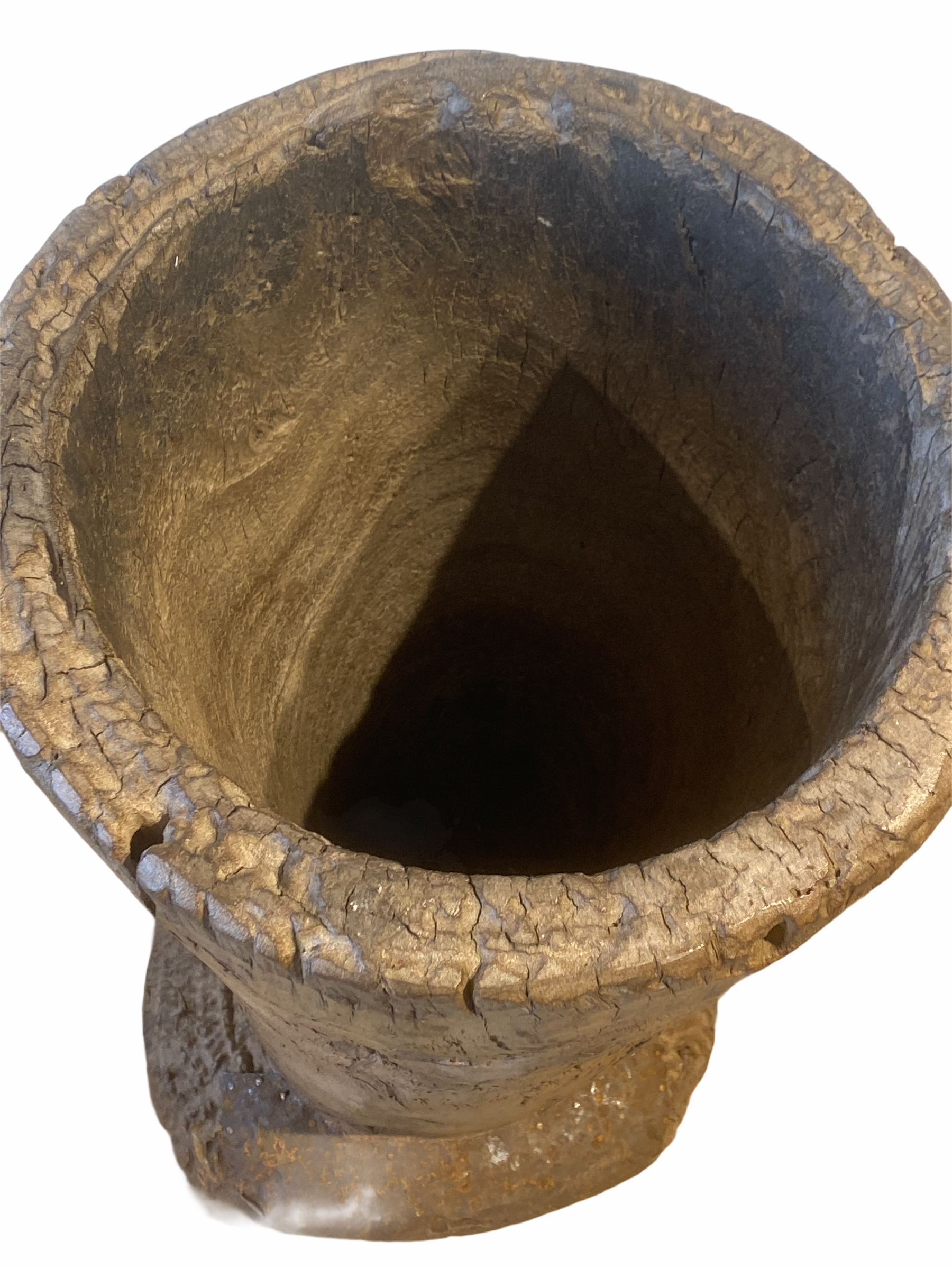 African grain stompers are made when they hollow out tree trucks and large branches to create these which are then used to grind grain. They can be used as planters or turn them upside down to be used as stools.
