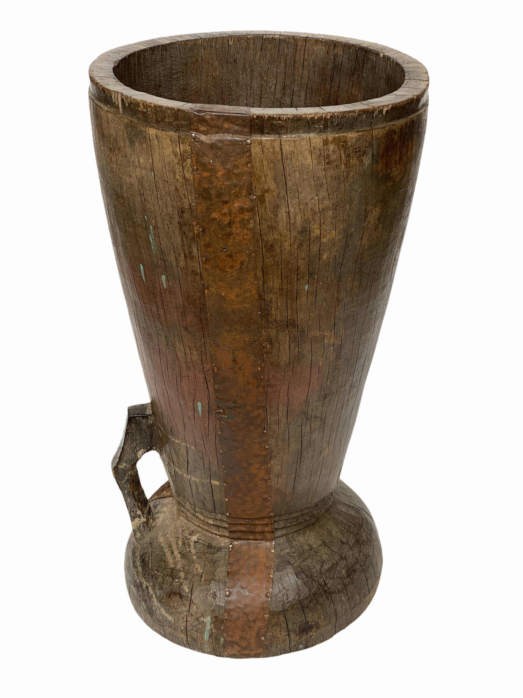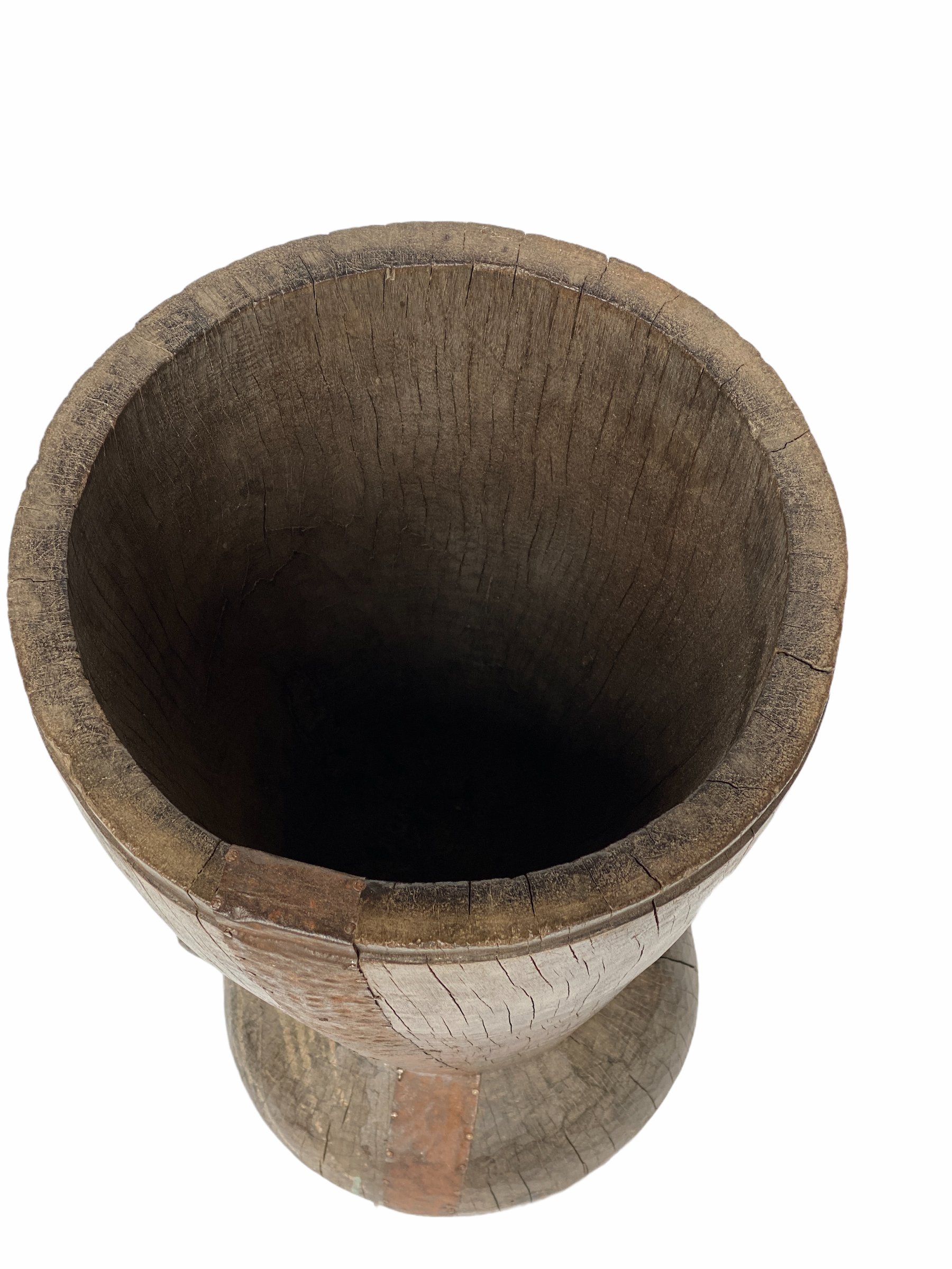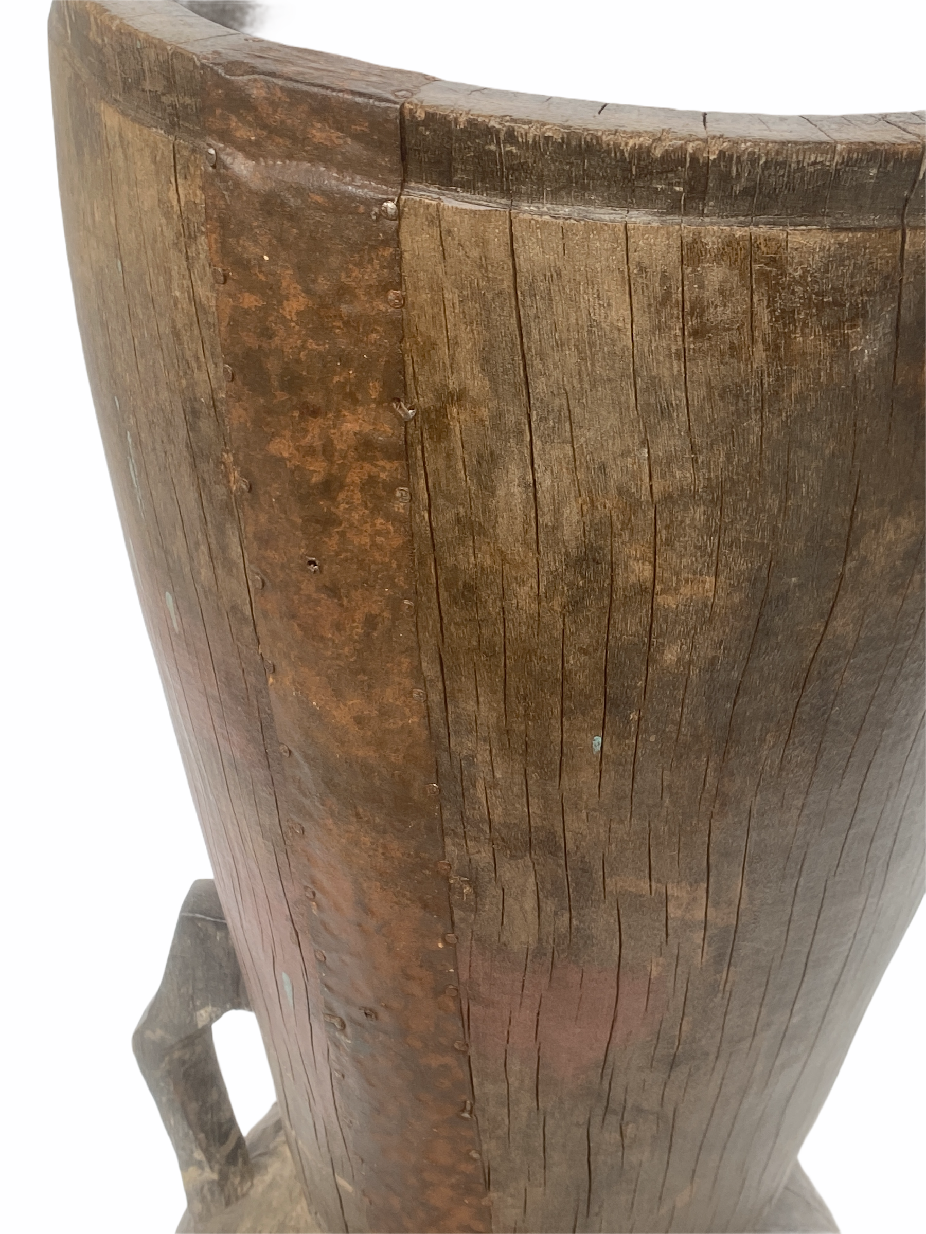 African grain stompers are made when they hollow out tree trucks and large branches to create these which are then used to grind grain. They can be used as planters or turn them upside down to be used as stools/ planters or simply standing as a piece of sculpture.