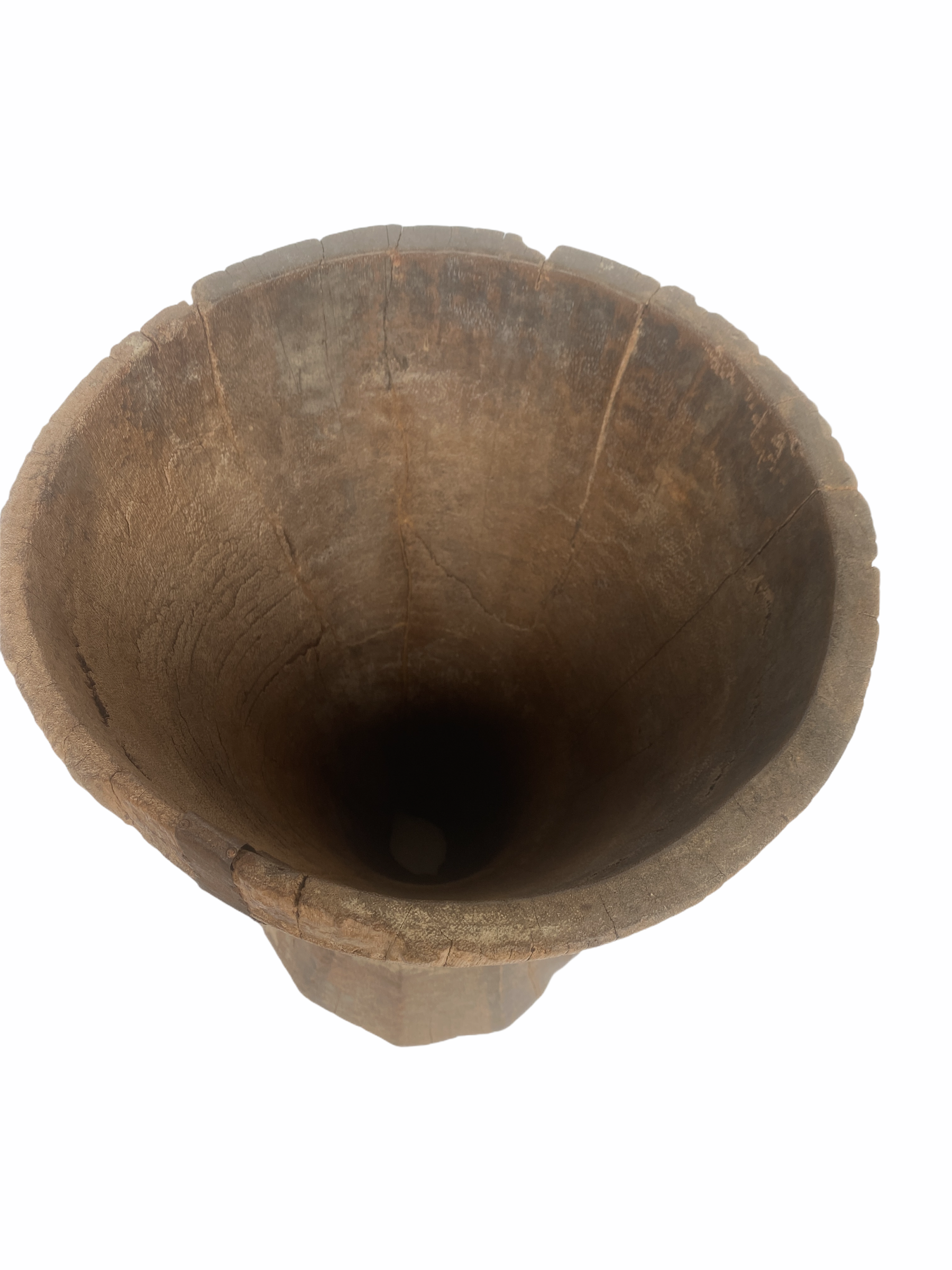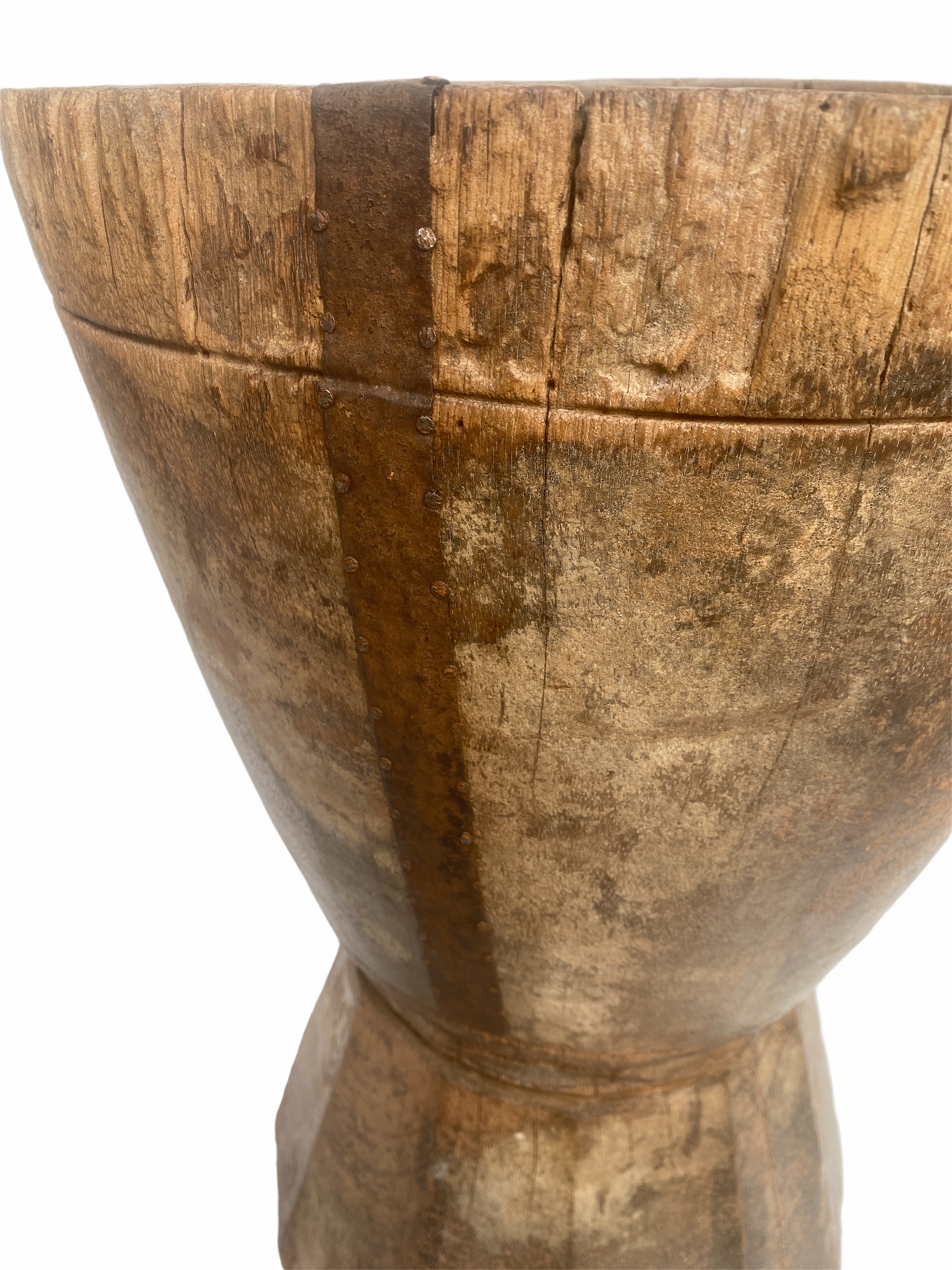 African grain stompers are made when they hollow out tree trucks and large branches to create these which are then used to grind grain. They can be used as planters or turn them upside down to be used as stools or simply standing as a piece of sculpture.