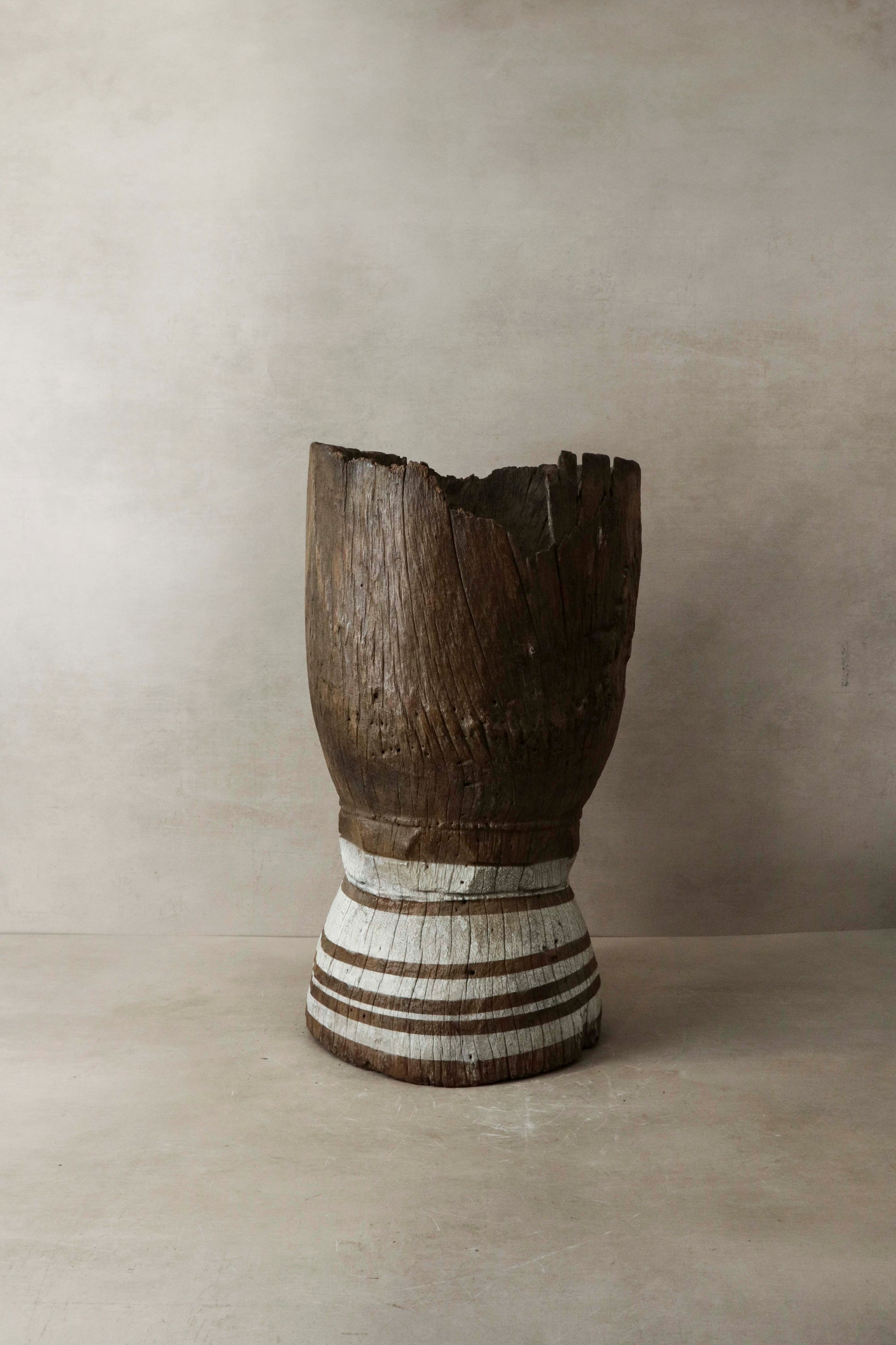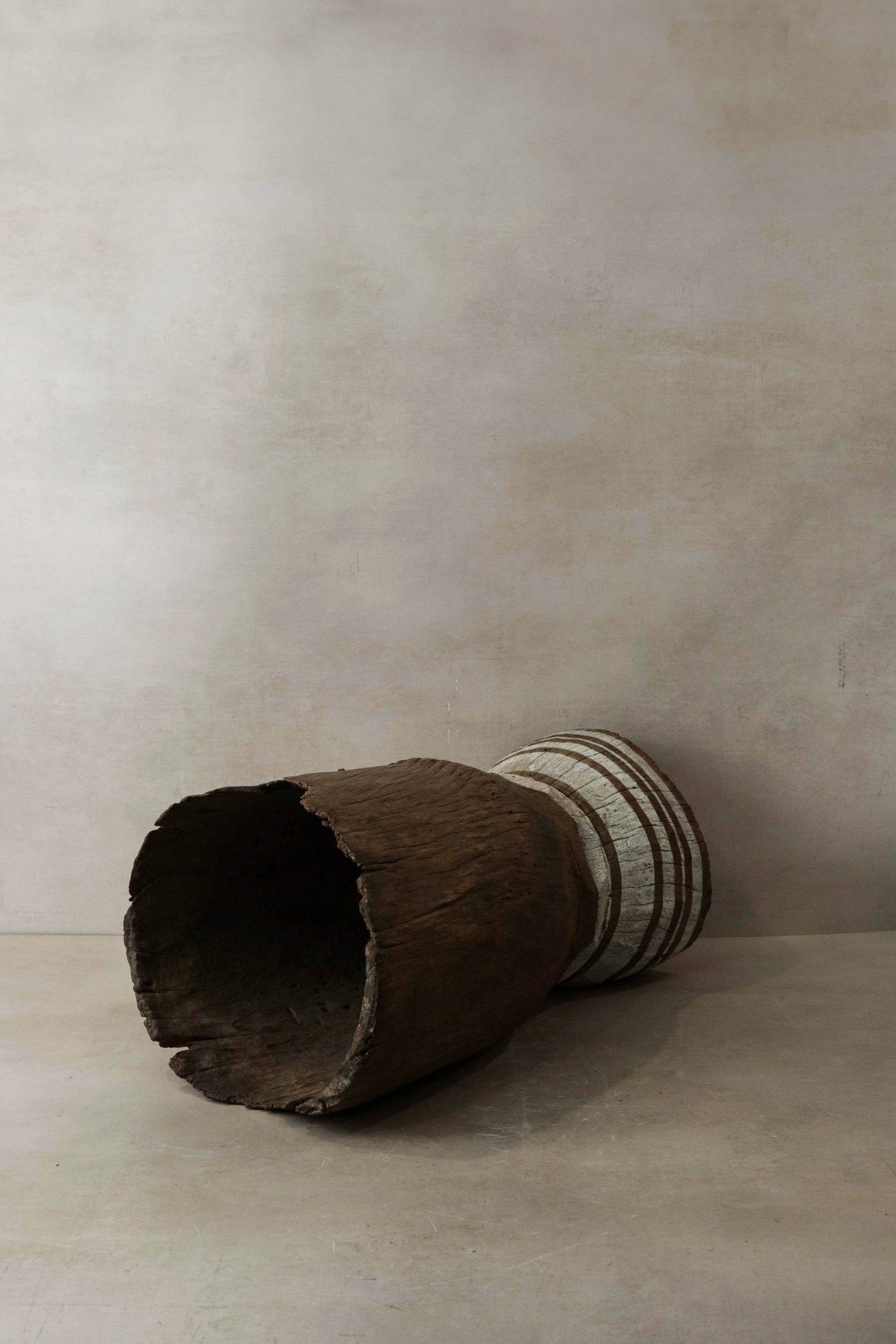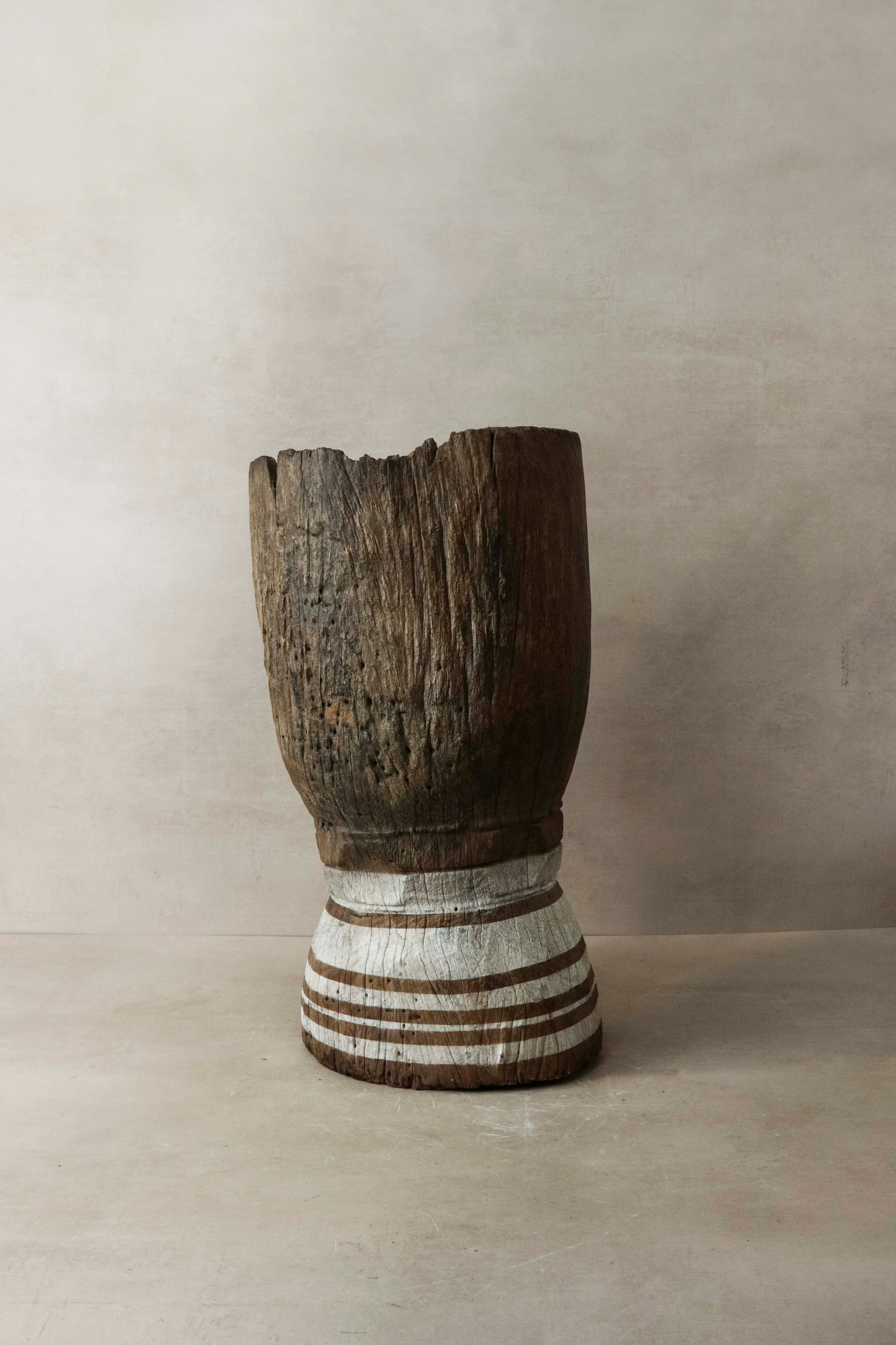 African grain stompers are made when they hollow out tree trucks and large branches to create these which are then used to grind grain. They can be used as planters or turn them upside down to be used as stools/ planters or simply standing as a piece of sculpture.