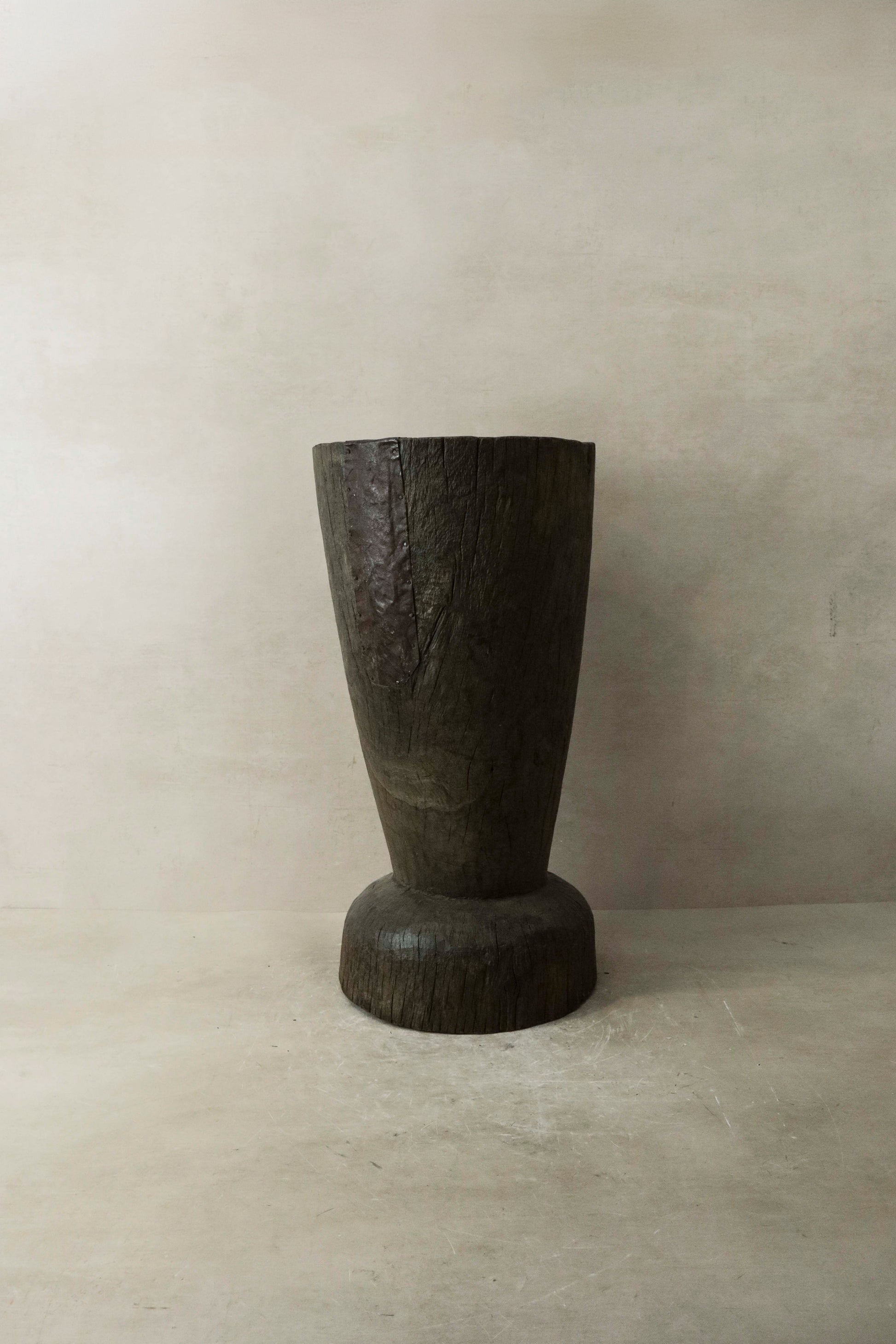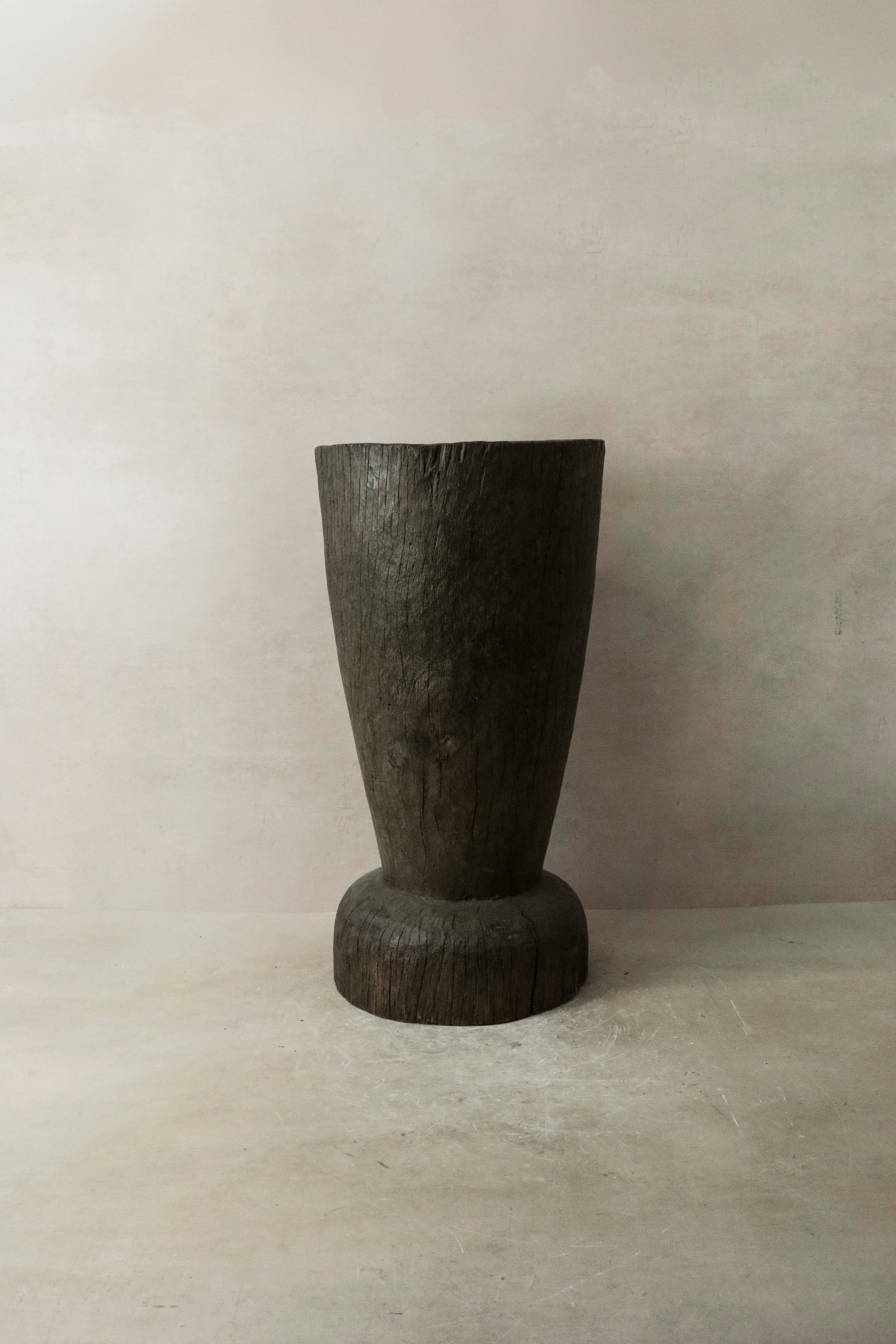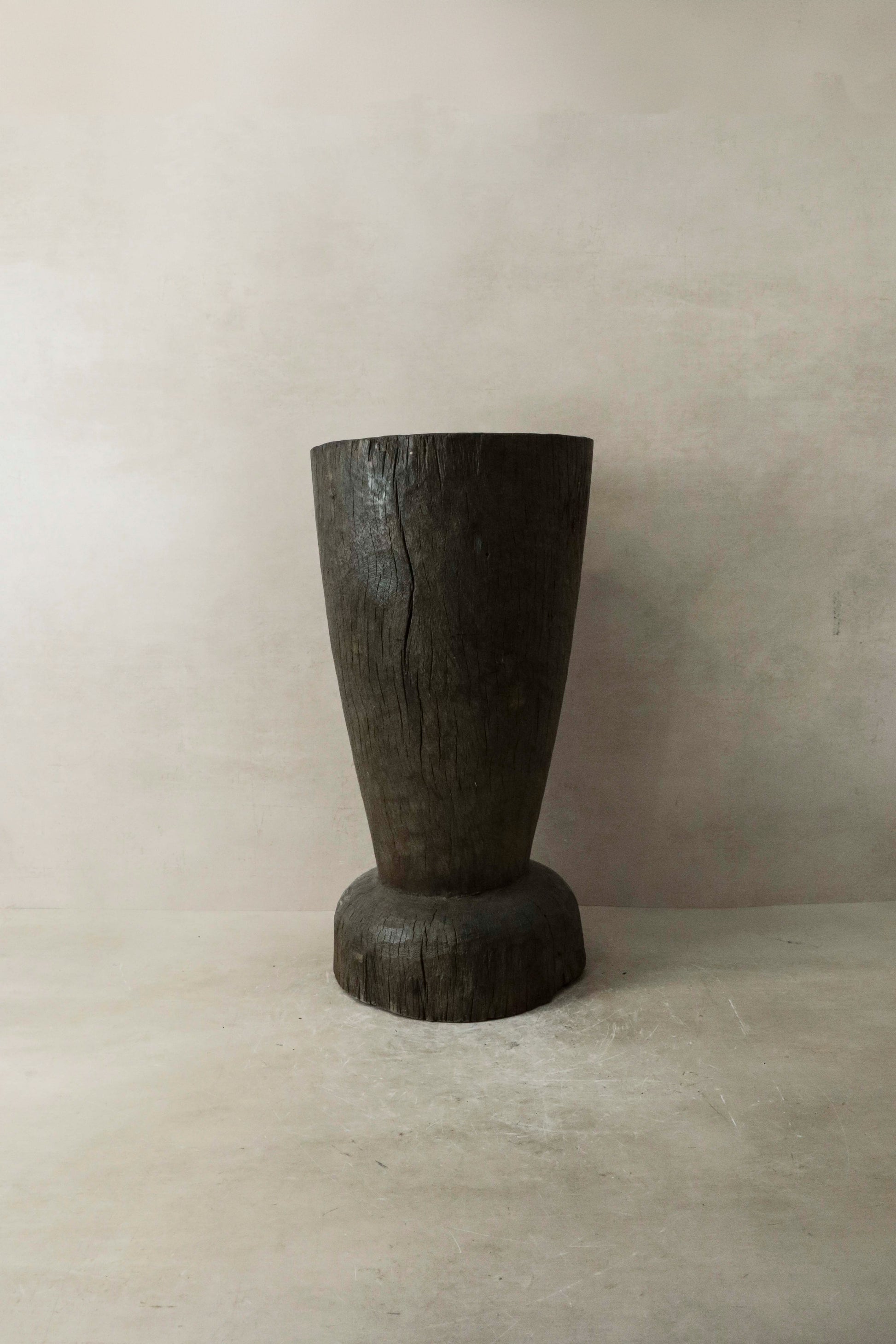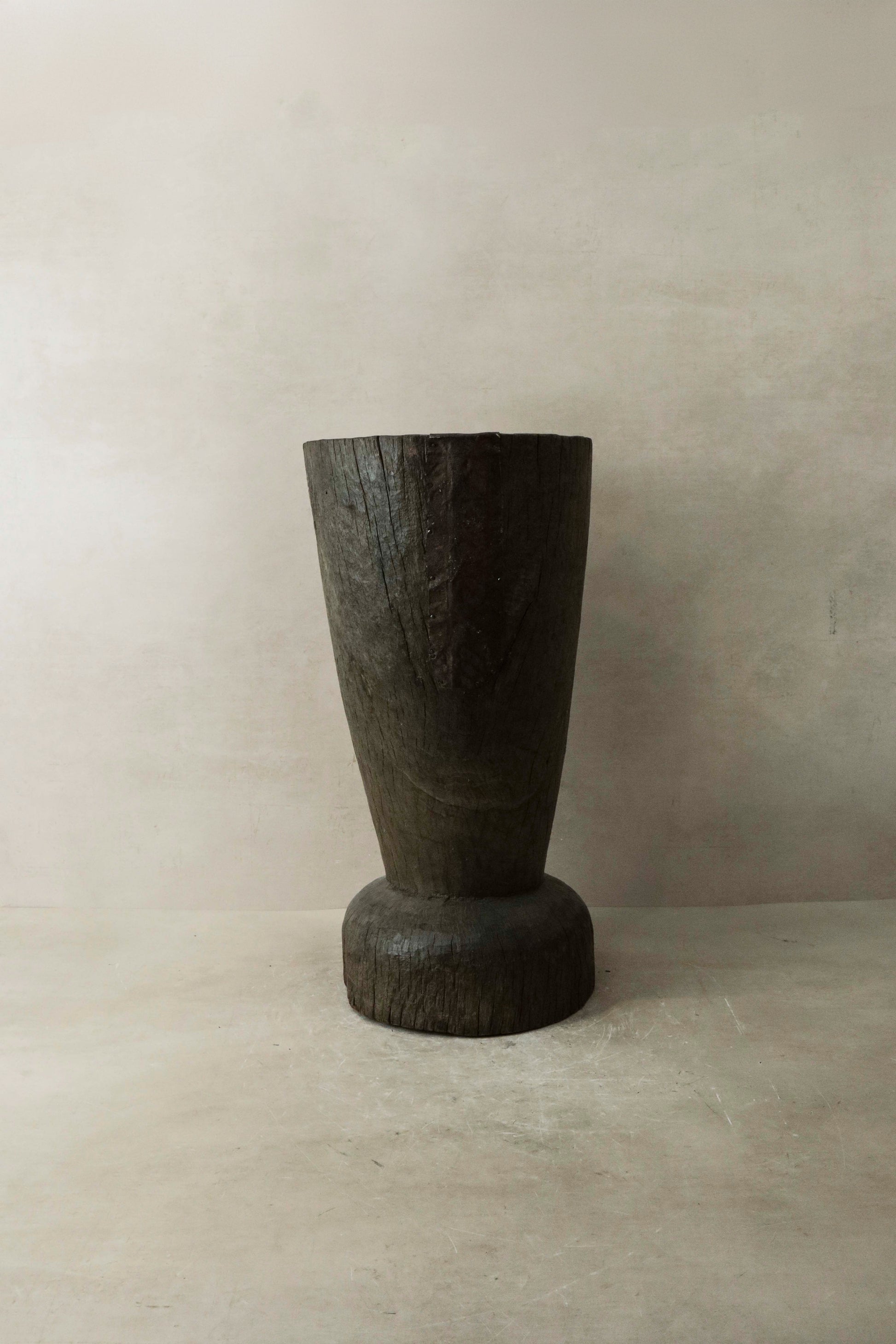 African grain stompers are made when they hollow out tree trucks and large branches to create these which are then used to grind grain. They can be used as planters or turn them upside down to be used as stools/ planters or simply standing as a piece of sculpture.