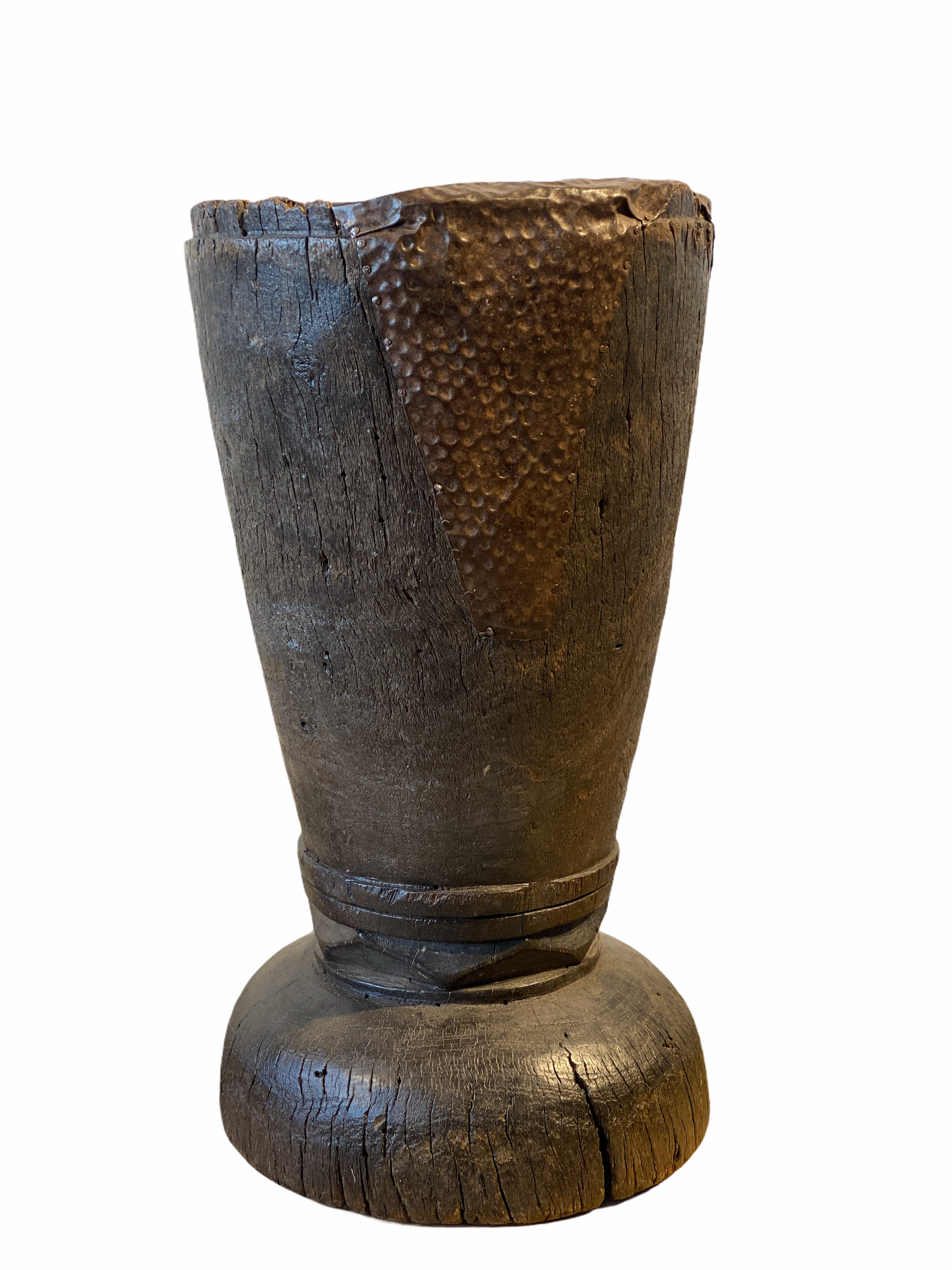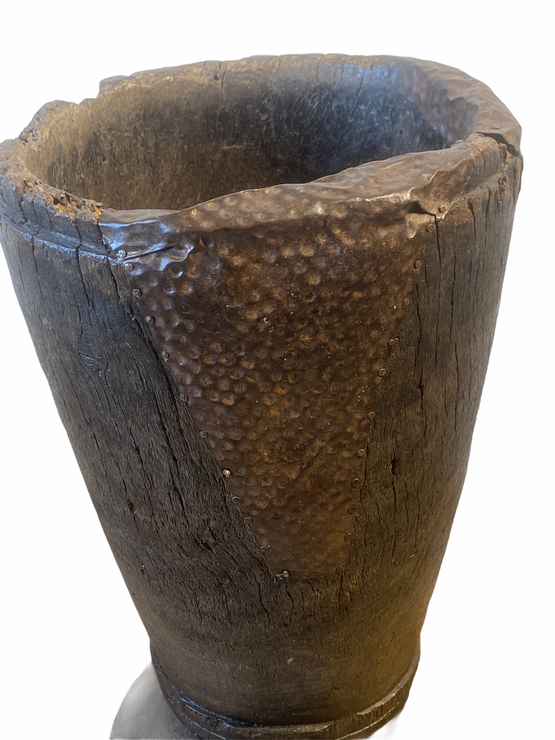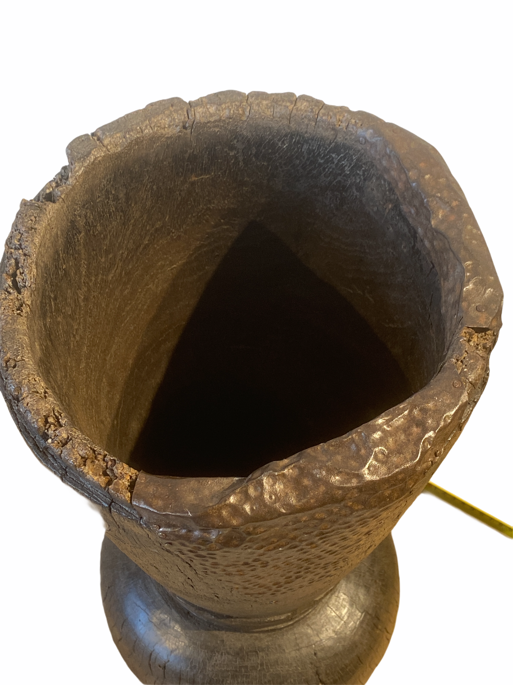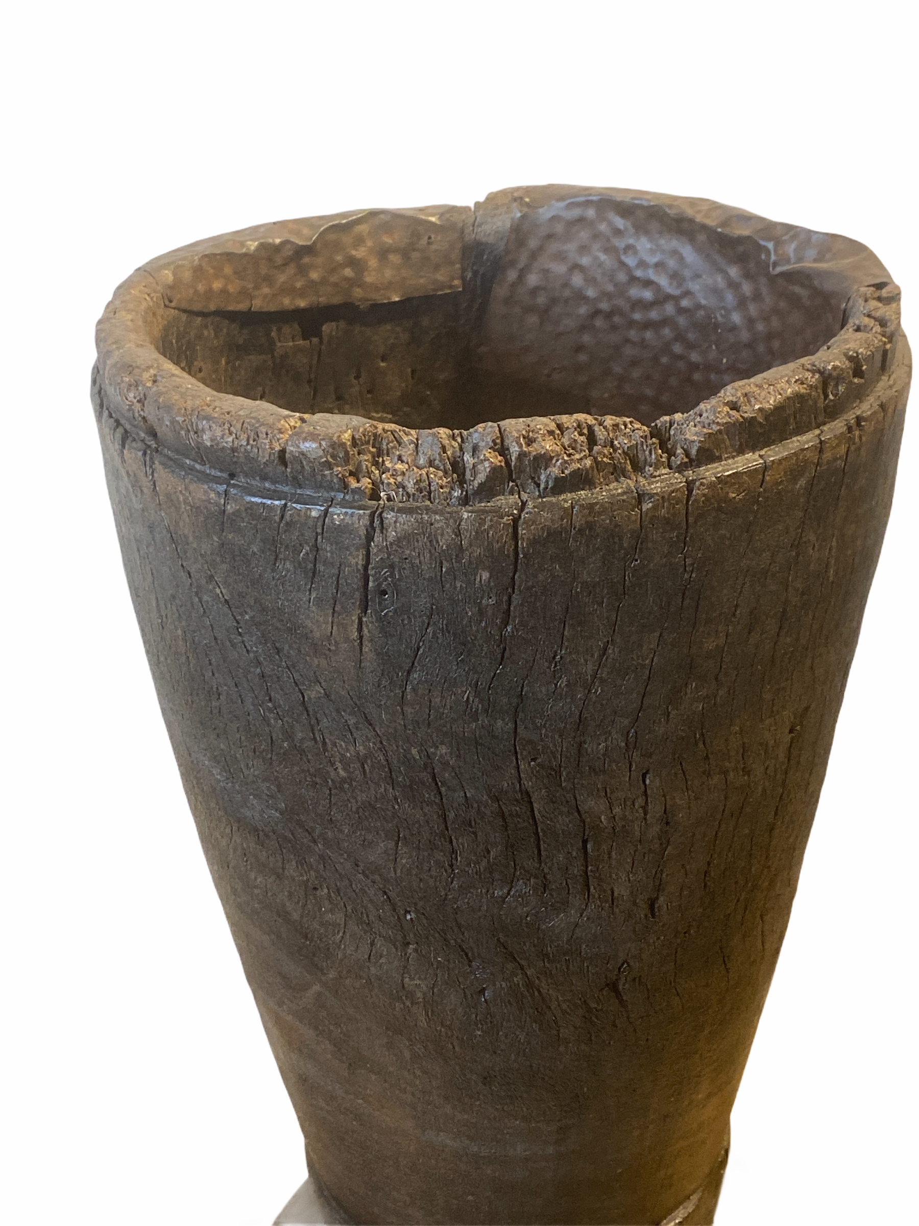 African grain stompers are made when they hollow out tree trucks and large branches to create these which are then used to grind grain. They can be used as planters or turn them upside down to be used as stools/side tables or simply a piece of sculpture.