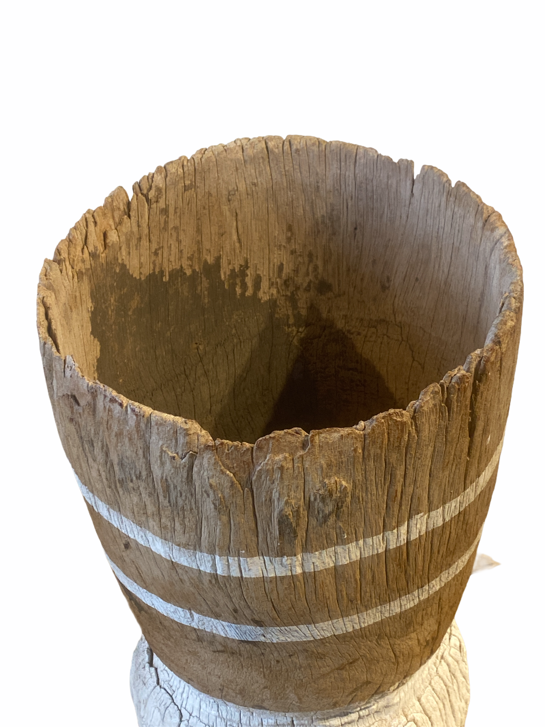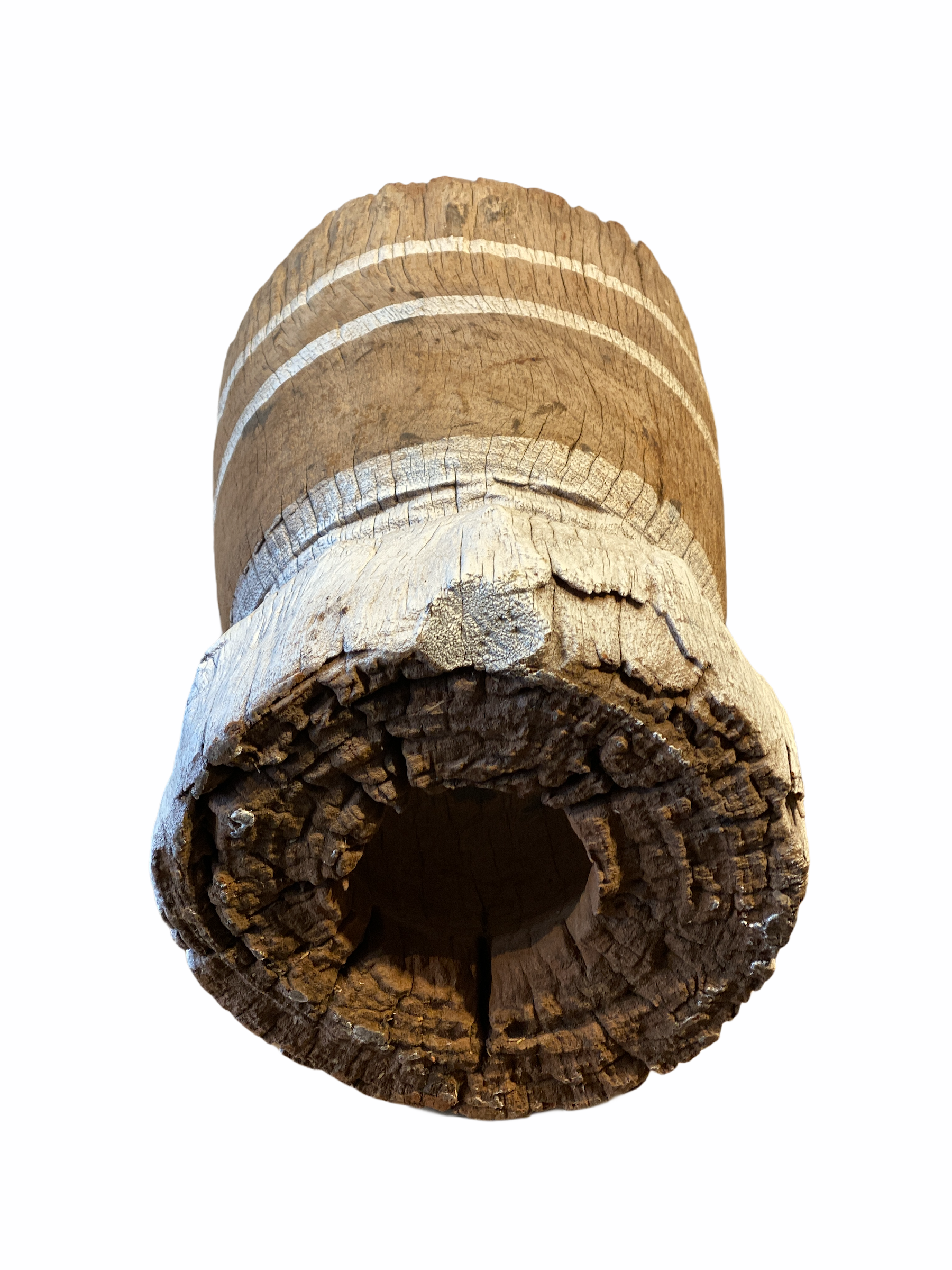African grain stompers are made when they hollow out tree trucks and large branches to create these which are then used to grind grain. They can be used as planters or turn them upside down to be used as stools.