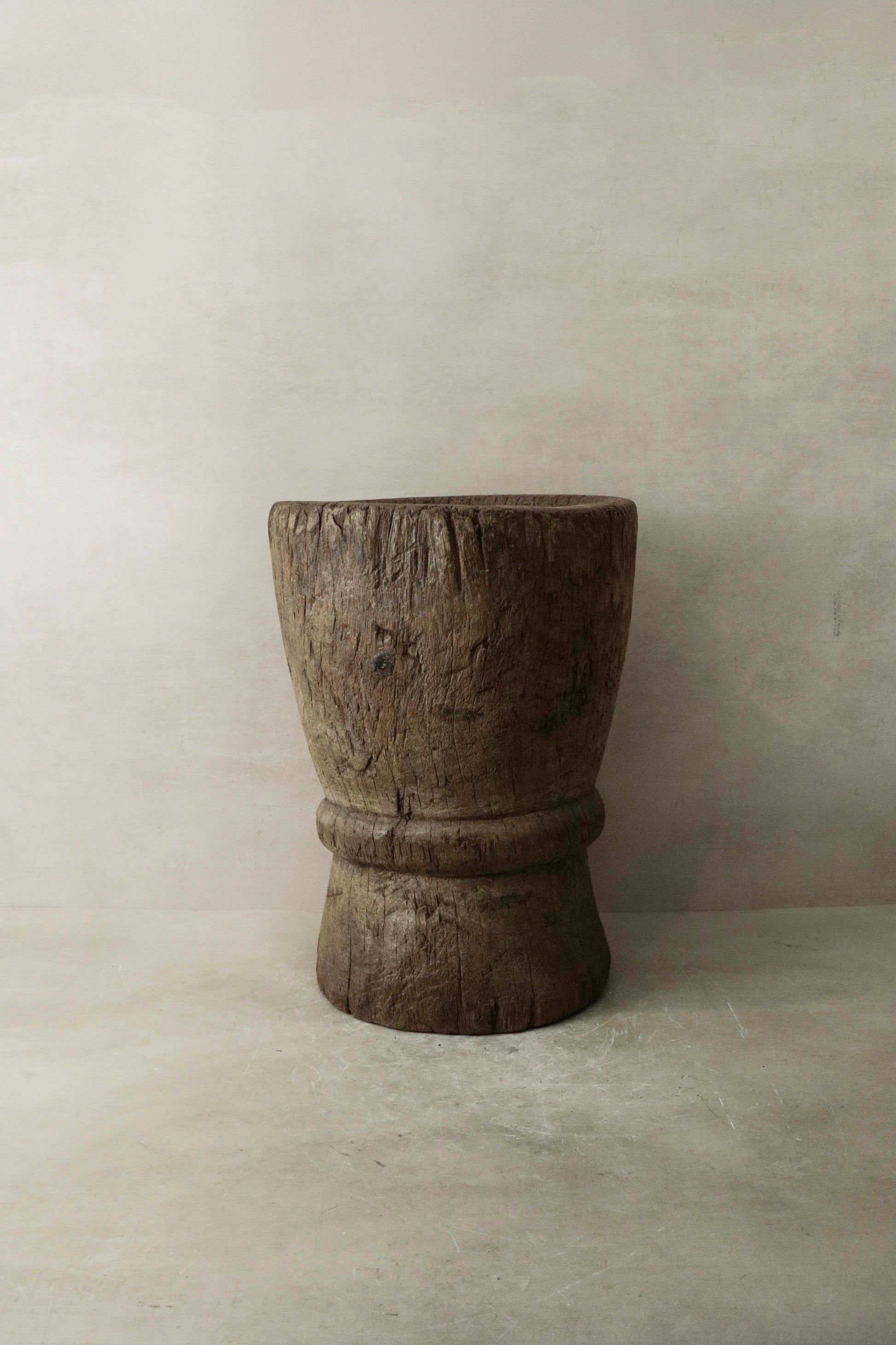 African grain stompers are made when they hollow out tree trucks and large branches to create these which are then used to grind grain. They can be used as planters or turn them upside down to be used as stools/ planters or simply standing as a piece of sculpture.