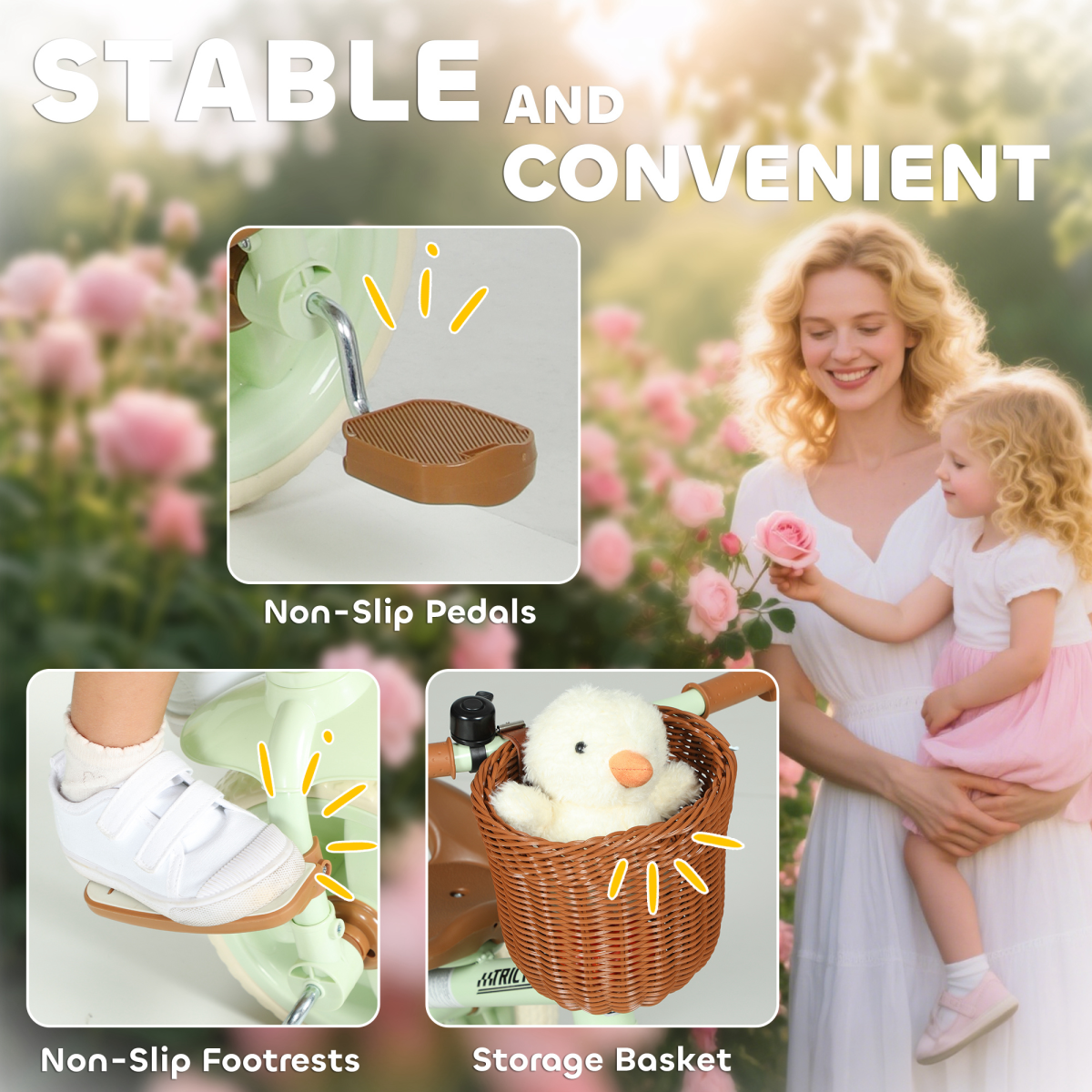 AIYAPLAY Toddler Trike with Adjustable Parent Handle Basket for Kids