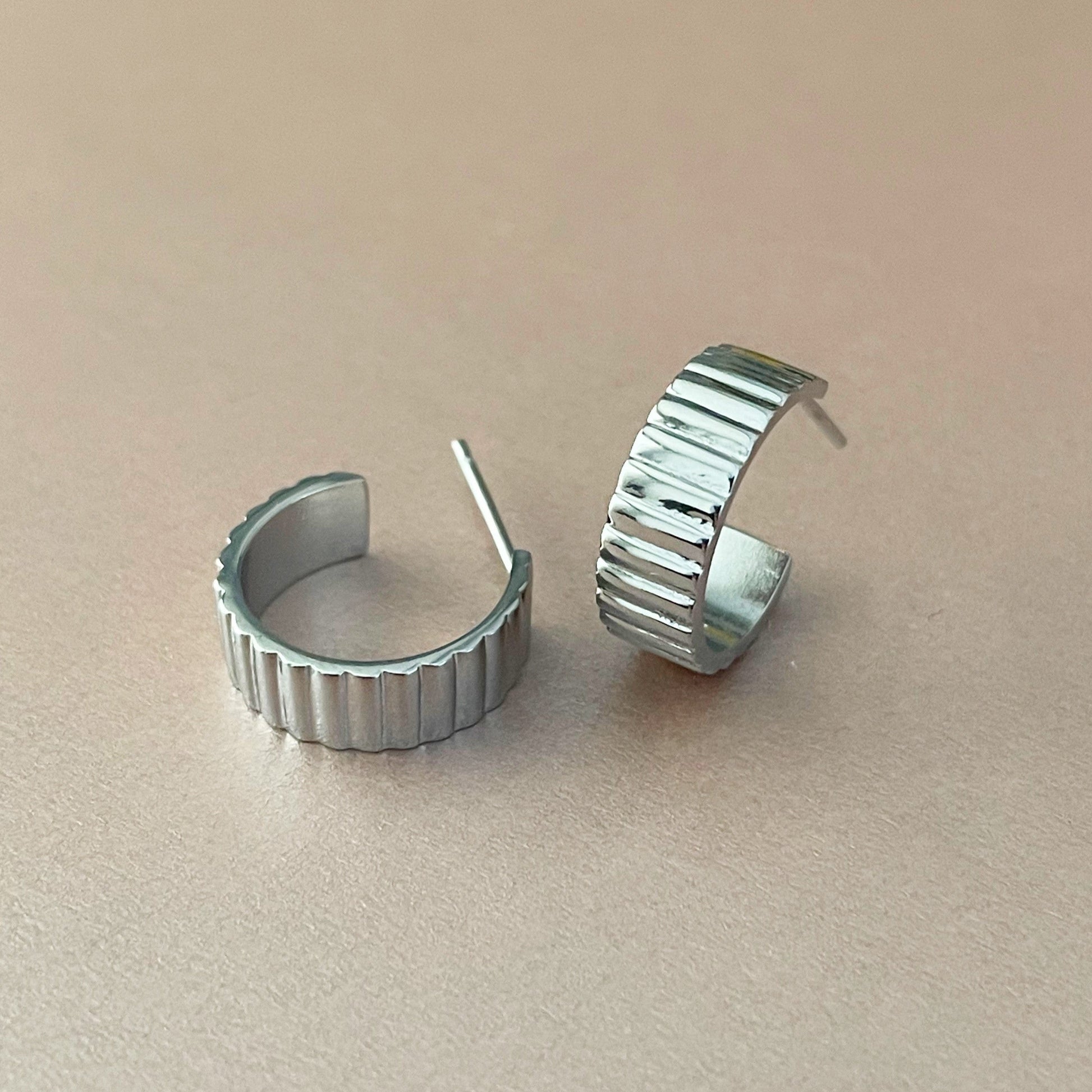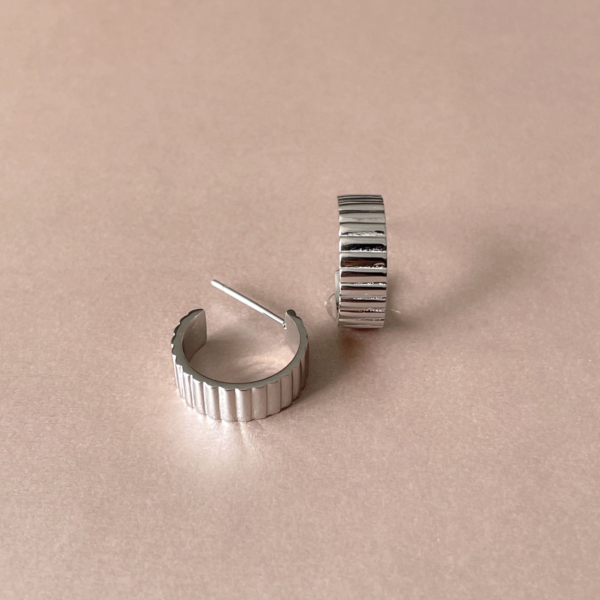 Make a statement and get noticed with these Alexa Luxe Silver Ridged Hoops. Crafted with a ridged silhouette, these hoops are versatile enough to complement any outfit. Exuding sophisticated elegance, they're perfect for any occasion.