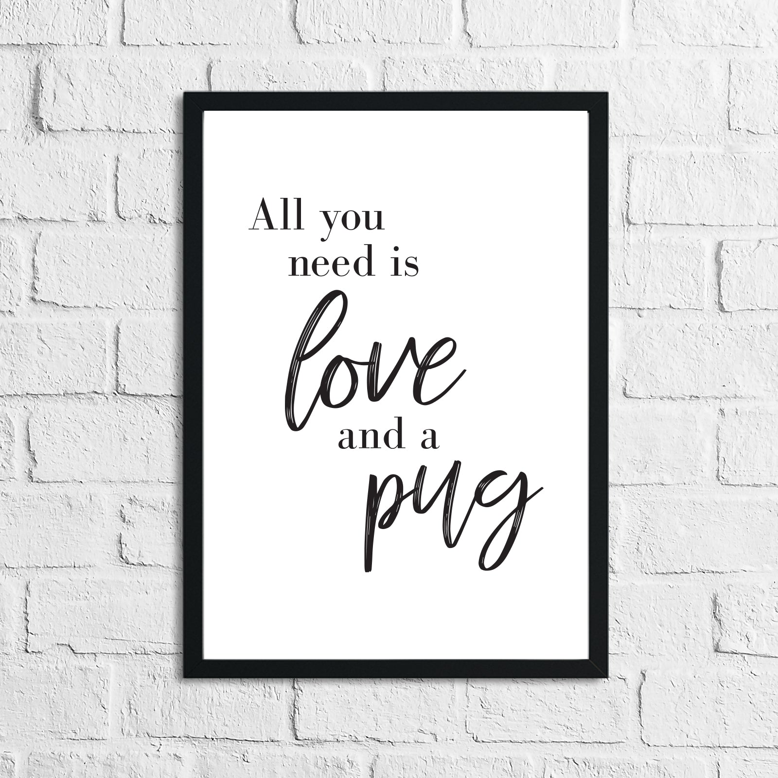 All You Need Is Love & A Pug or Any Breed Animal Wall Decor Simple Print