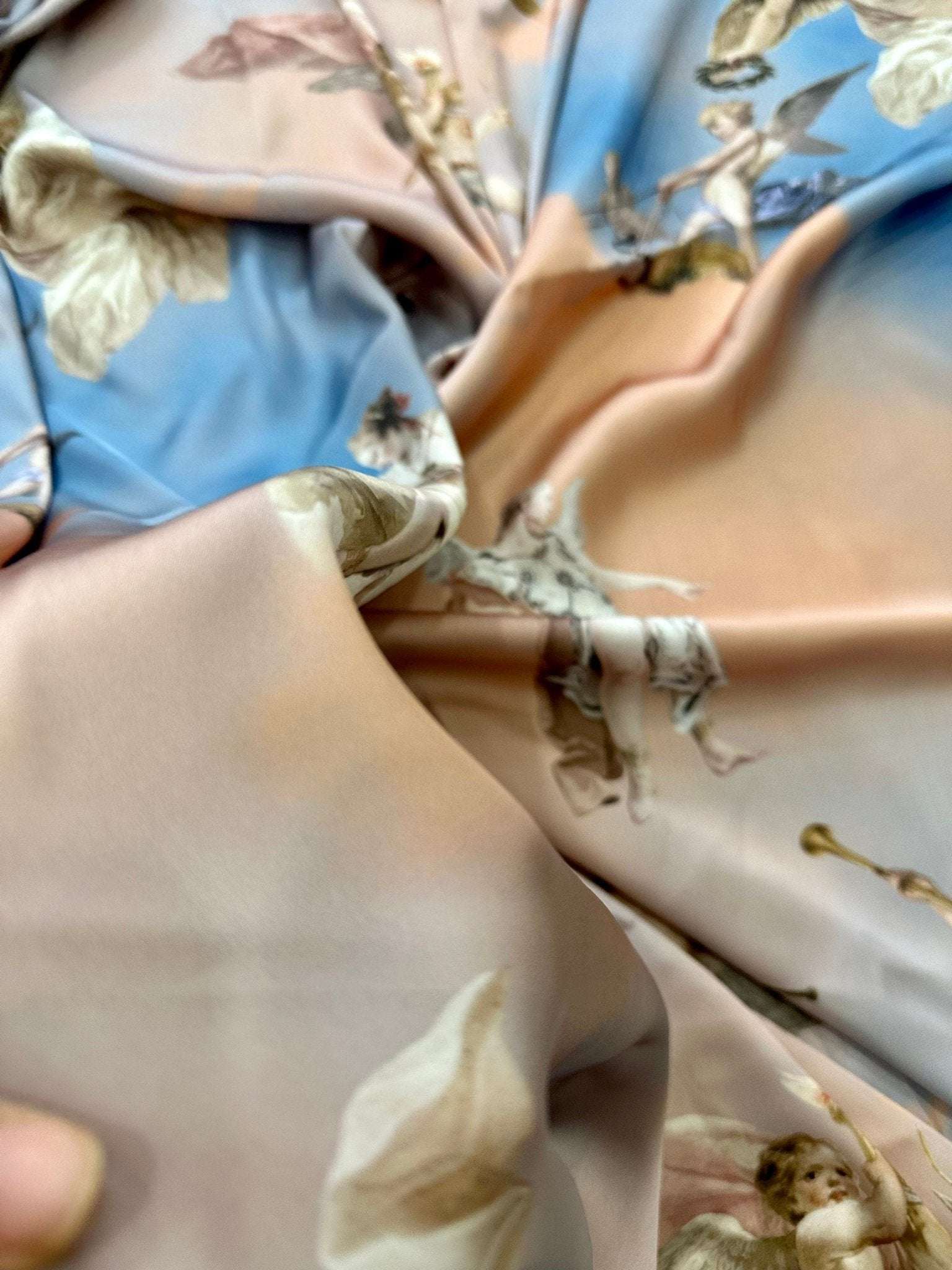 Angel Print Sky Blue Fabric – Custom Printed Fabric, Choose Material by Metre