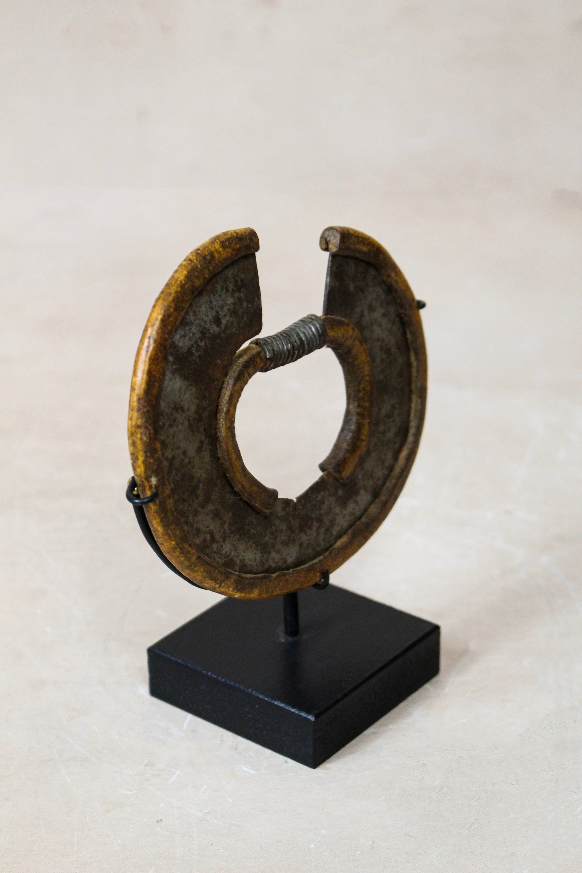 Central Wrist Guard: The inner ring is wrapped in traditional hide or fiber, ensuring a comfortable, secure fit against the wrist while providing the leverage needed for a quick strike.
