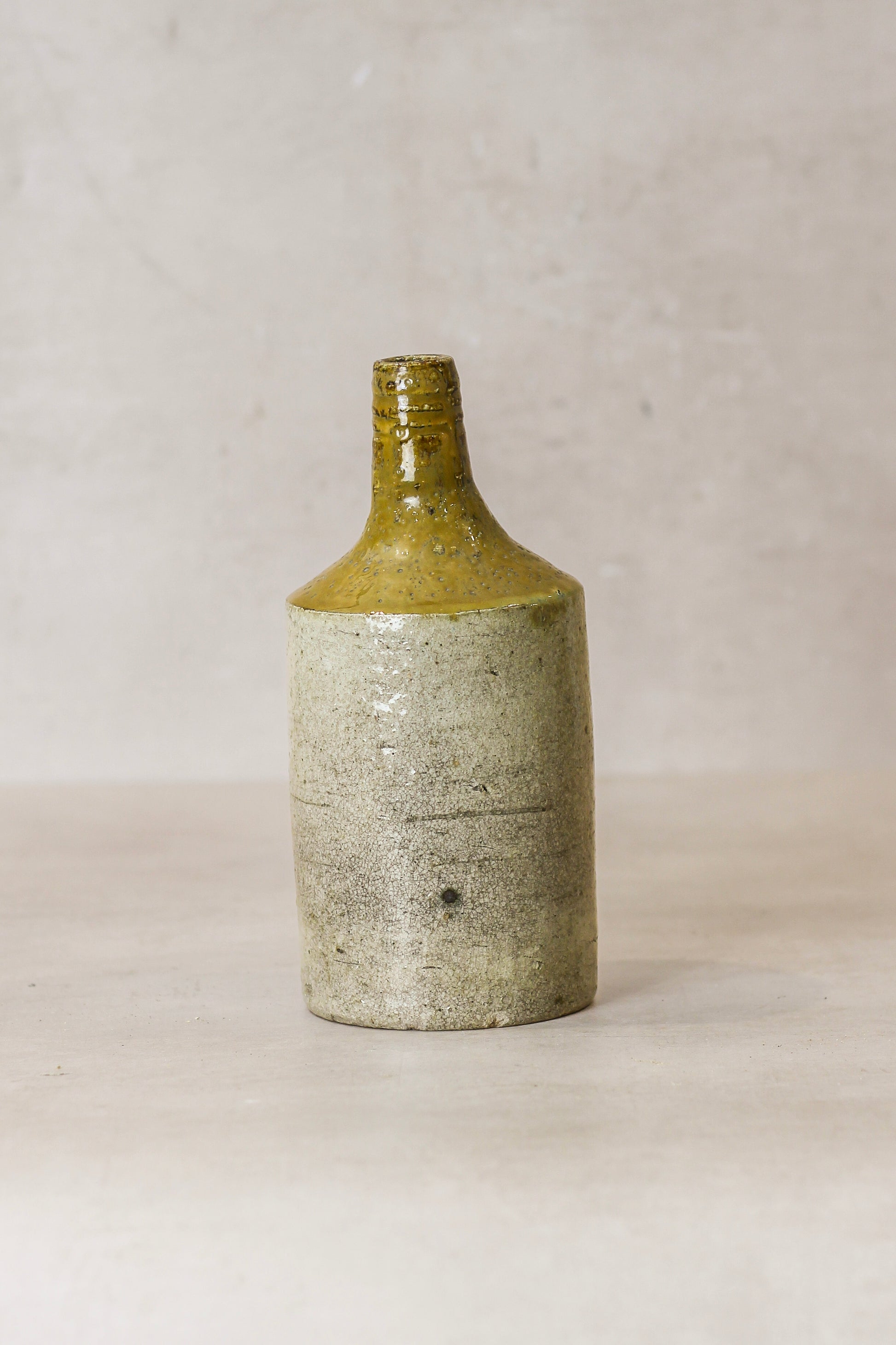 Crafted in Hong Kong and Guangdong province, China, around 1900–1950, this Vintage Stoneware Bottle whispers tales of rice wine or ginger beer from a bygone era. Standing as a rugged relic of history, its weathered patina and sturdy form—born of early 20th-century kilns—make it a striking décor piece or quirky vase for dried stems.